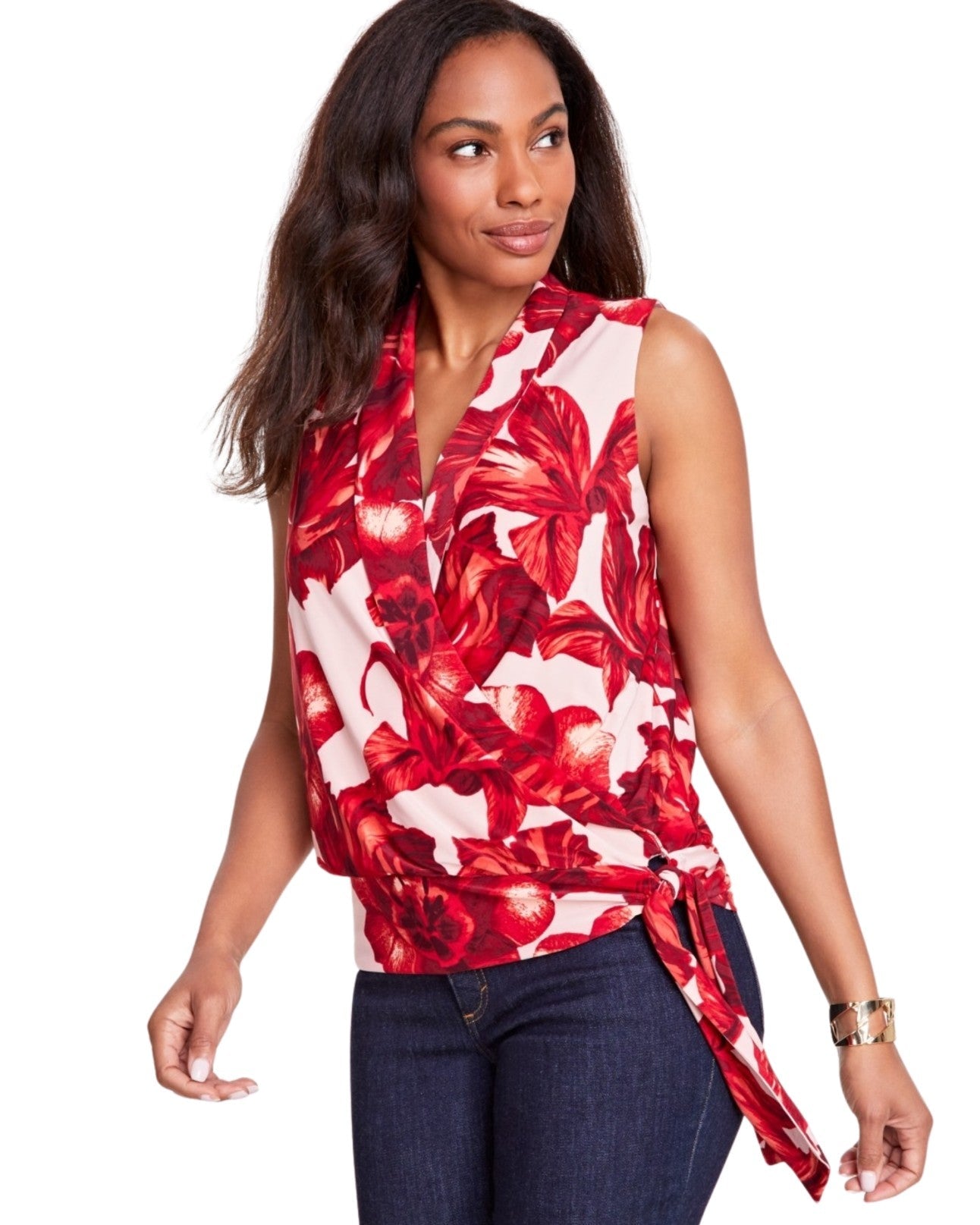 Women, Sleeveless, V Neck, Tie Side, Floral, Soft, Comfort, Chic & Stylish, 95% Polyester, 5% Spandex
