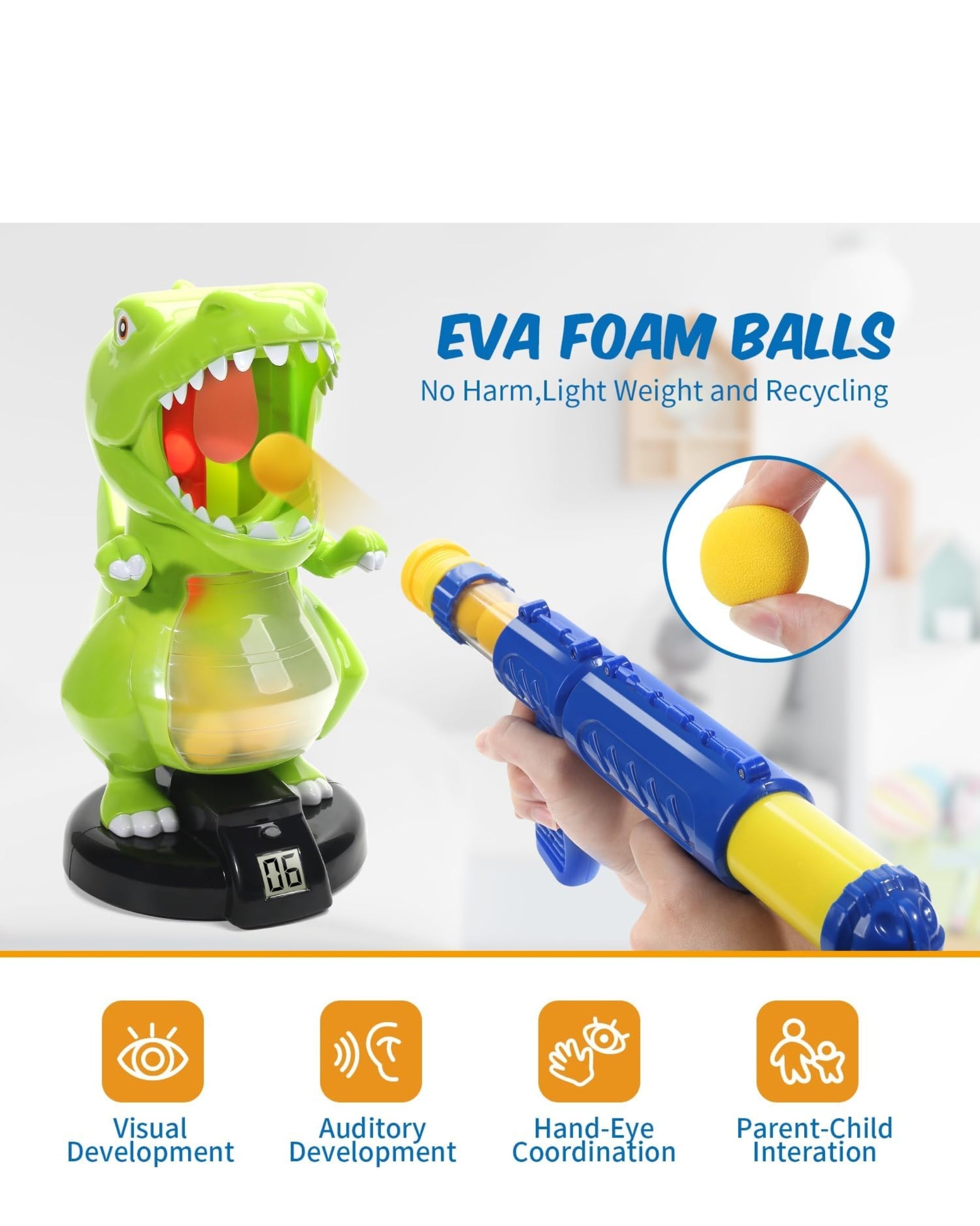Fun Hungry Dinosaur Feeding Shooting Game, High Quality Foam Ball Safe & Exciting, Air Pump Study & Durable, Shoot Range Up to 10 Meters, Sound When Hit The Target, Tail Removal, 6 +
