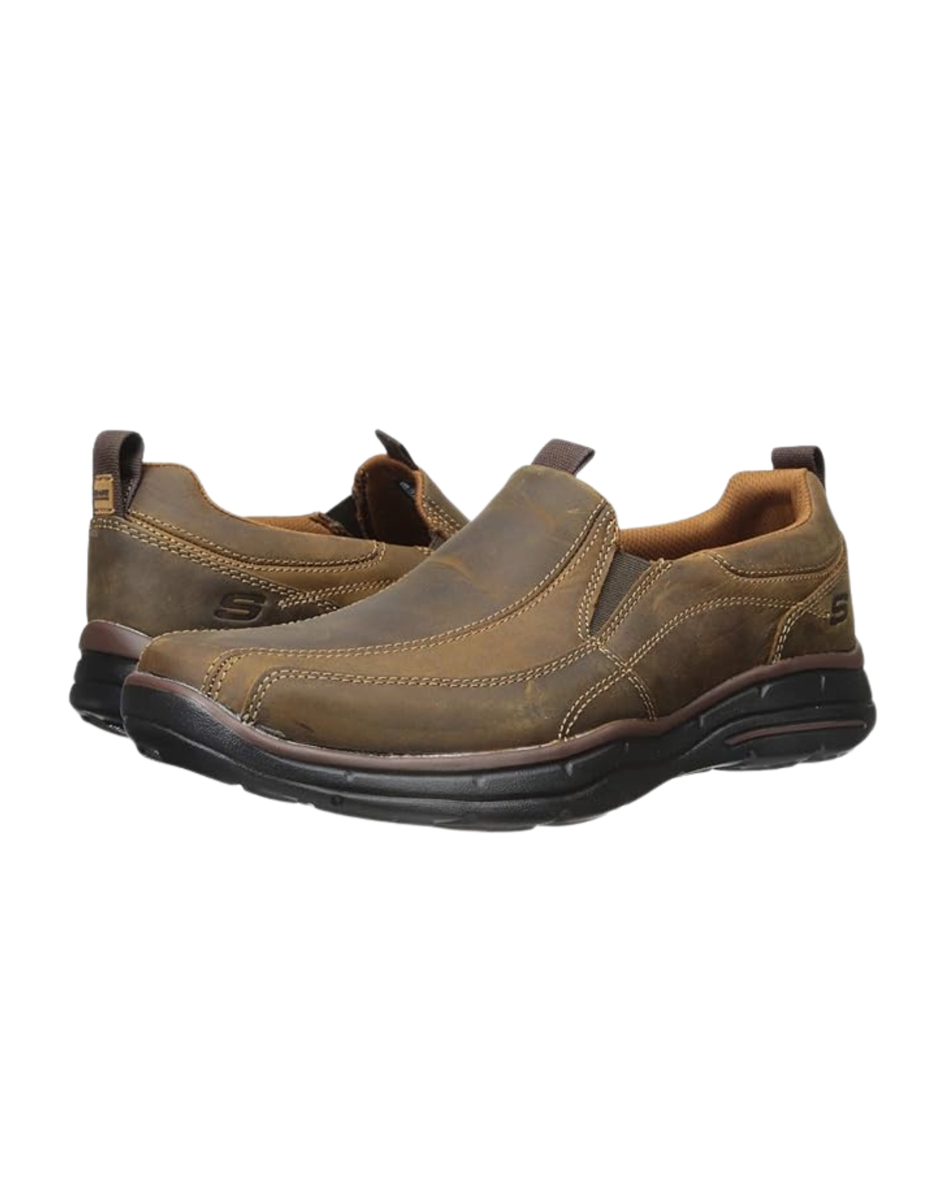 Men, Flat, Slip In, Rubber, Smooth Oiled Leather, Memory Foam, Comfort