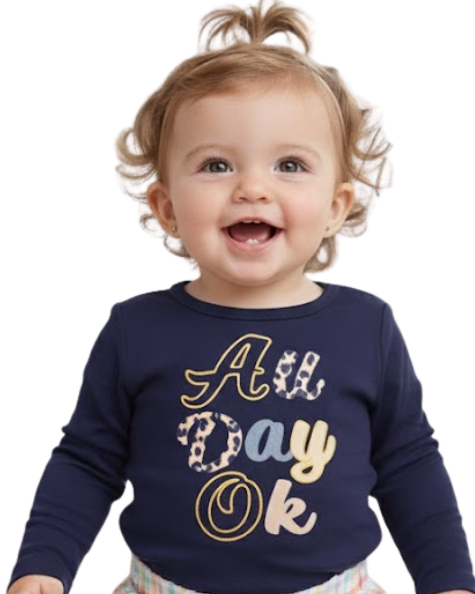 Long Sleeve, Crew Neck, Back Snap Button, Designed, Casual, 95% Cotton, 5% Elastane