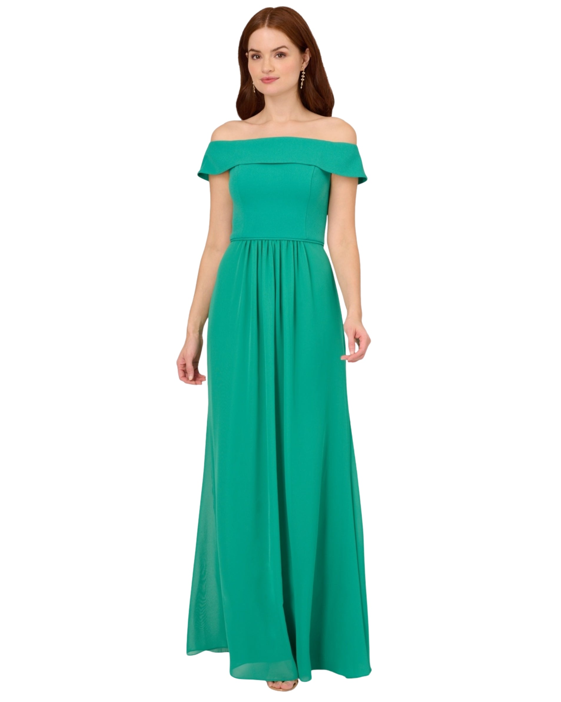 ADRIANNA PAPELL Women Pleated Tea Length Evening Dress
