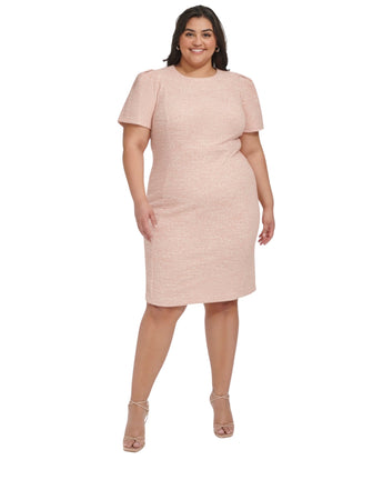 Women, Fashion, Casual, Short Sleeve, Back Zipper Cxlosure, jewel neck, Tweed Sheath Dress