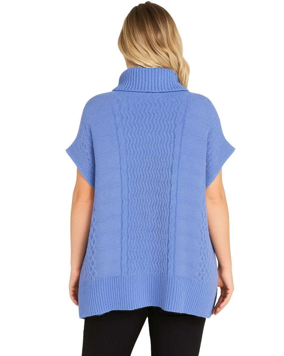 Women, Cap Sleeve, Turtle Neck, Soft, Rib Hem, Cable Knit Poncho, Wool, Warm, Side Slit, Casual & Stylish, 55% Polyester, 30% Acrylic, 3% Polyamide, 2% Elastane