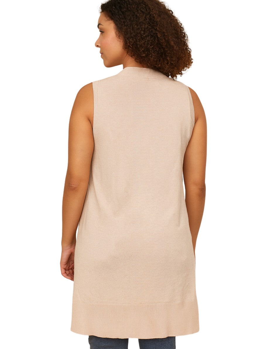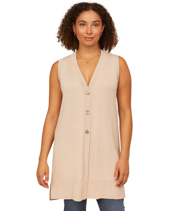 Women, Sleeveless, V Neck, Button Closure, Side Slit, Cozy, Comfort, Casual, 80% Viscose, 20% Polyamide