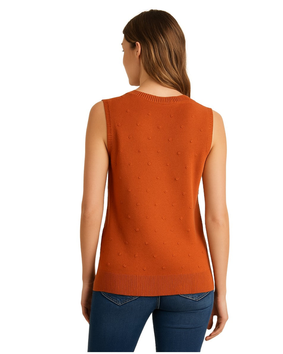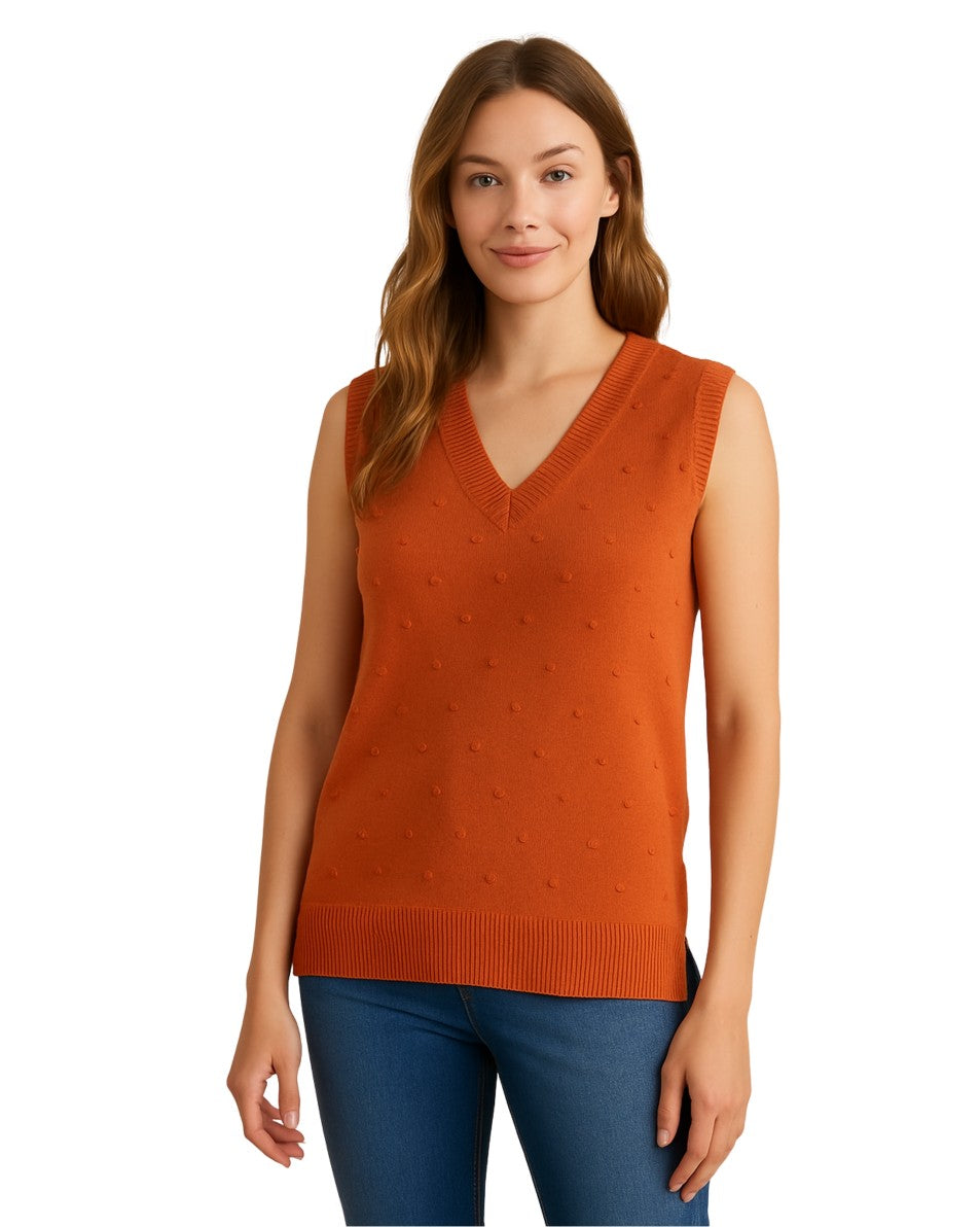 Women, Sleeveless, V Neck, Raised Dots, Slit Side, Soft Wool, Warm, Relaxed Fit, Casual, 100% Acrylic