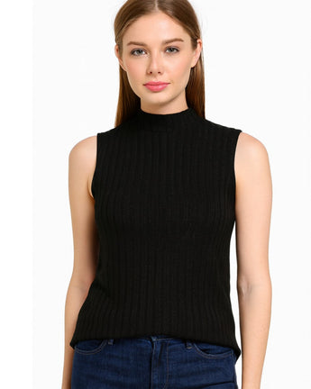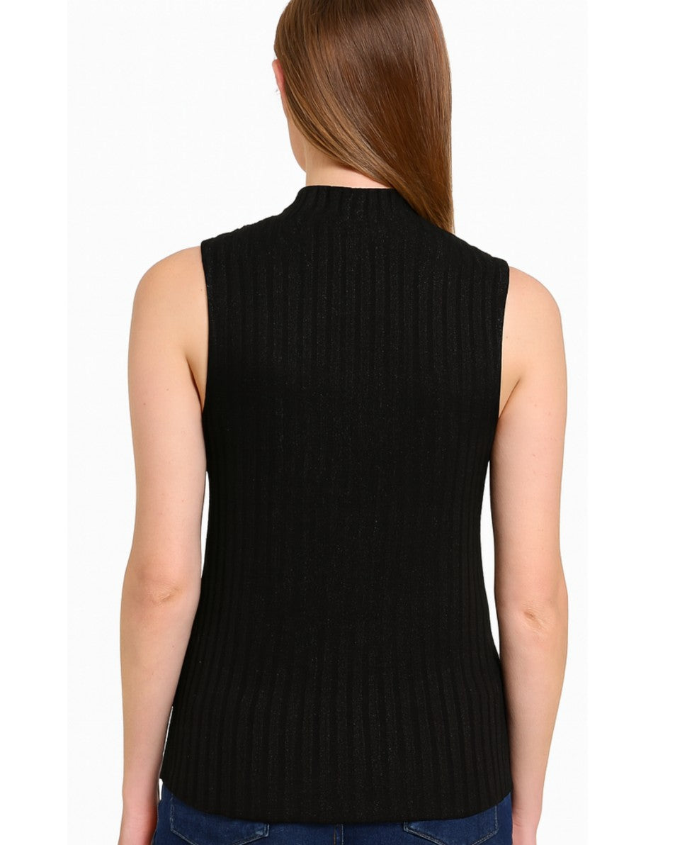 Women, Sleeveless, Mock Neck, Ribbed, Stretch, Relaxed Fit, Silver Shimmer, Casual, 57% Polyester, 23% Viscose, 9% Fiber Metalizada, 9% Polyamide, 2% Elastane