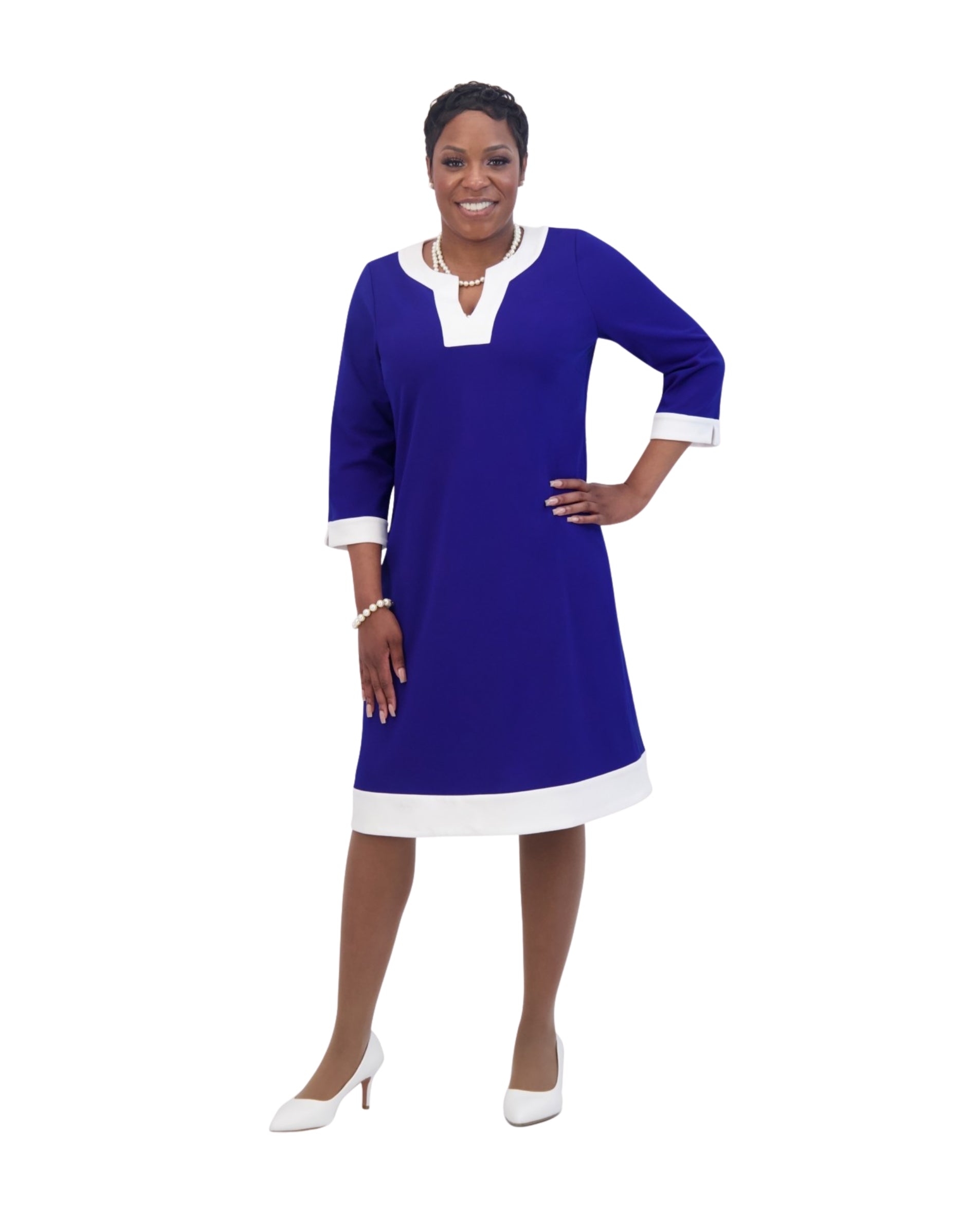 Women, Short Sleeve, V Neck, Relaxed, Contrast, Trim Sheath, Comfort, Chic