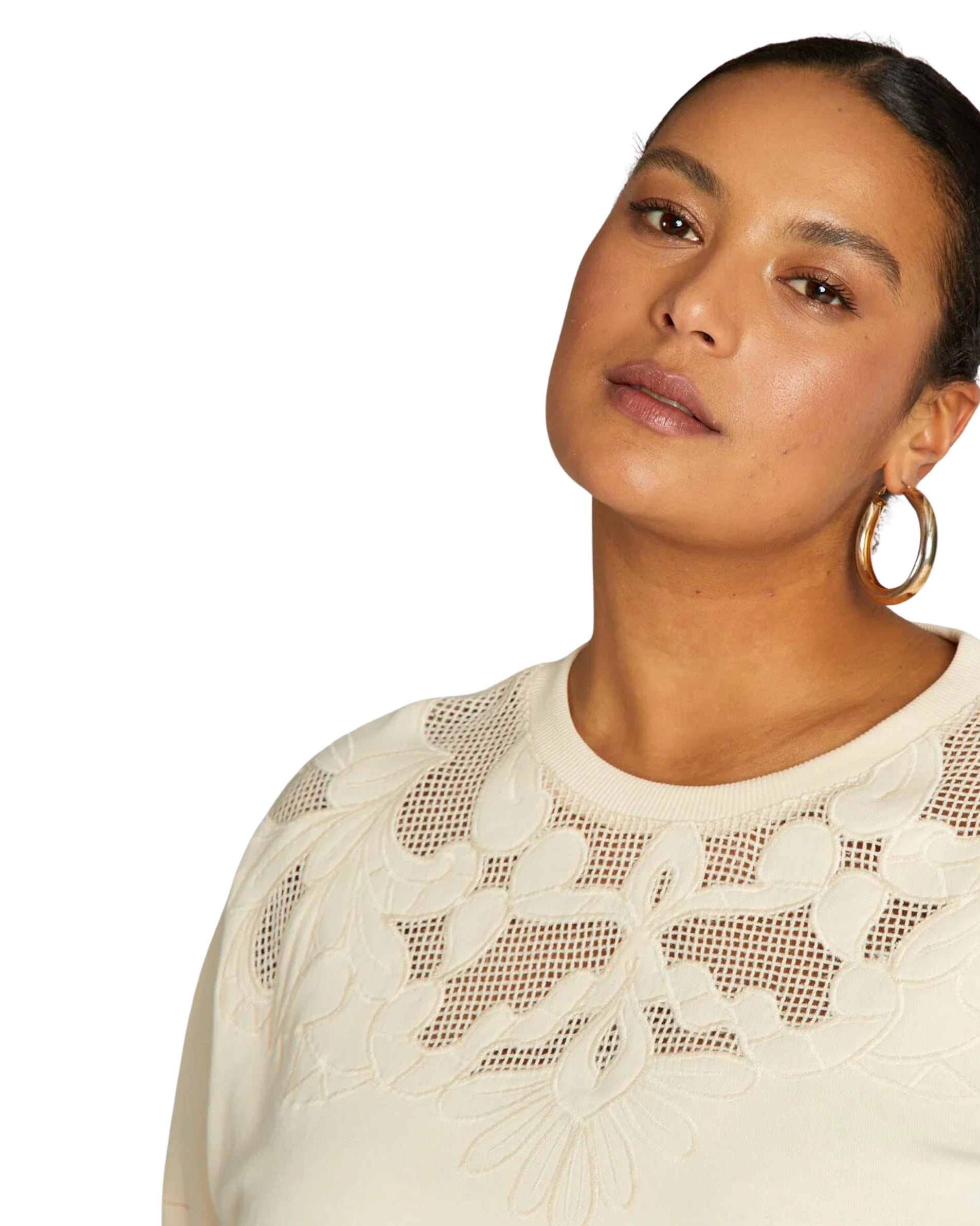 Women, Long Sleeve, Crew Neck, Lace Trim, Comfort, Regular Fit, Casual & Stylie, 100% Cotton