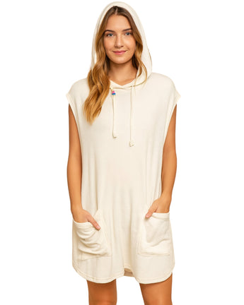 Women, Pull On, Cap Sleeve, Hooded, Drawstring, 2 Pockets, Soft Warm, Cozy, Relaxed, 82% Cotton, 18% Polyester