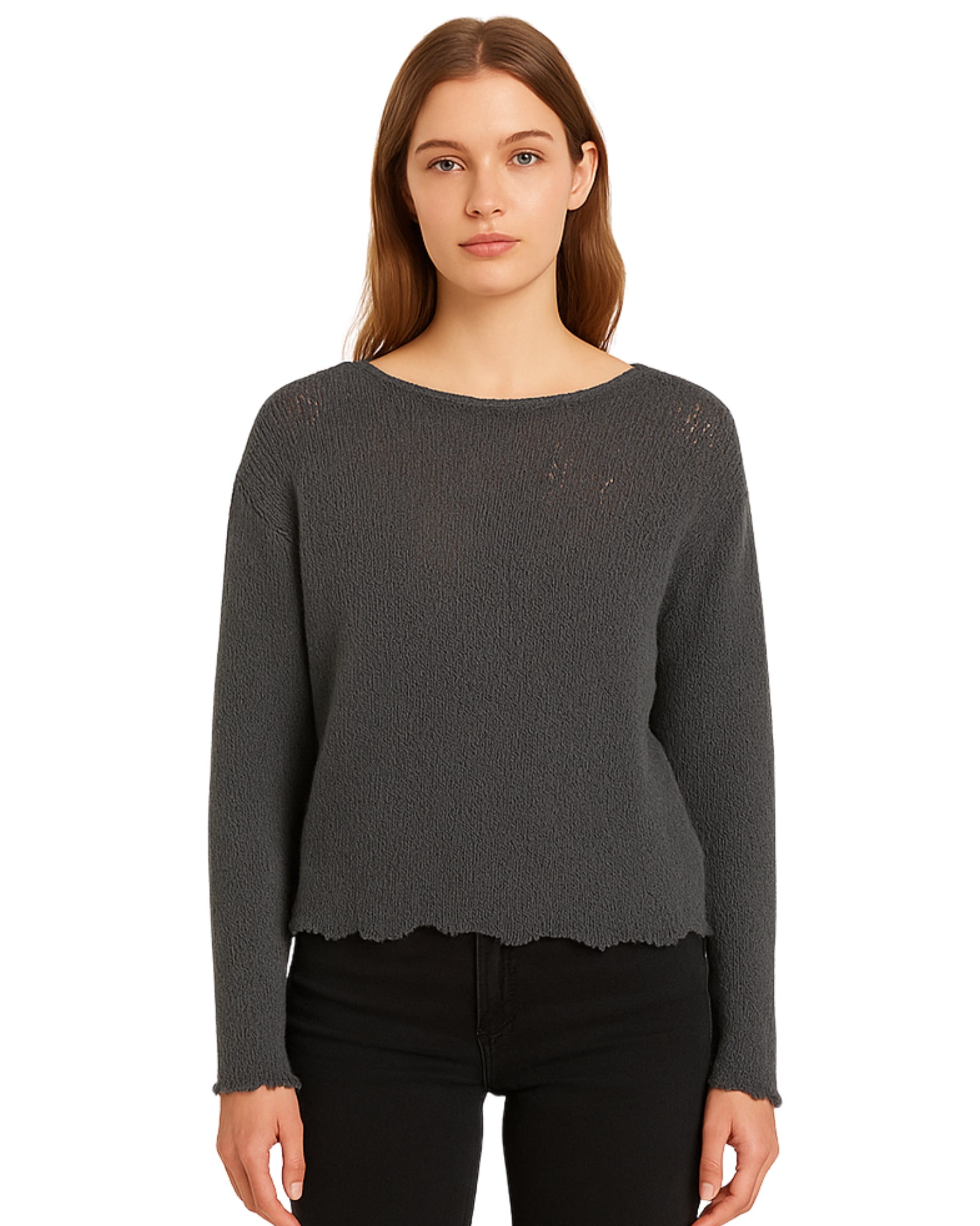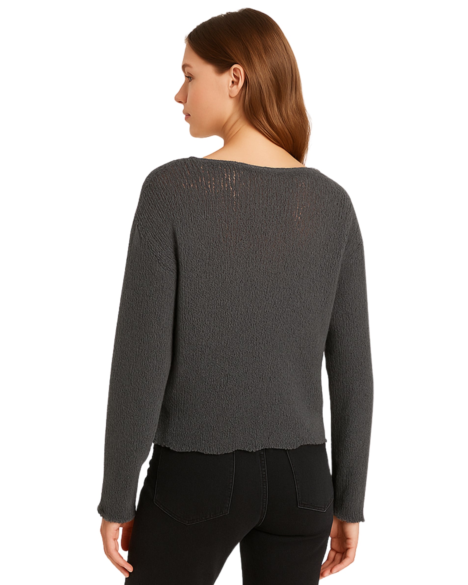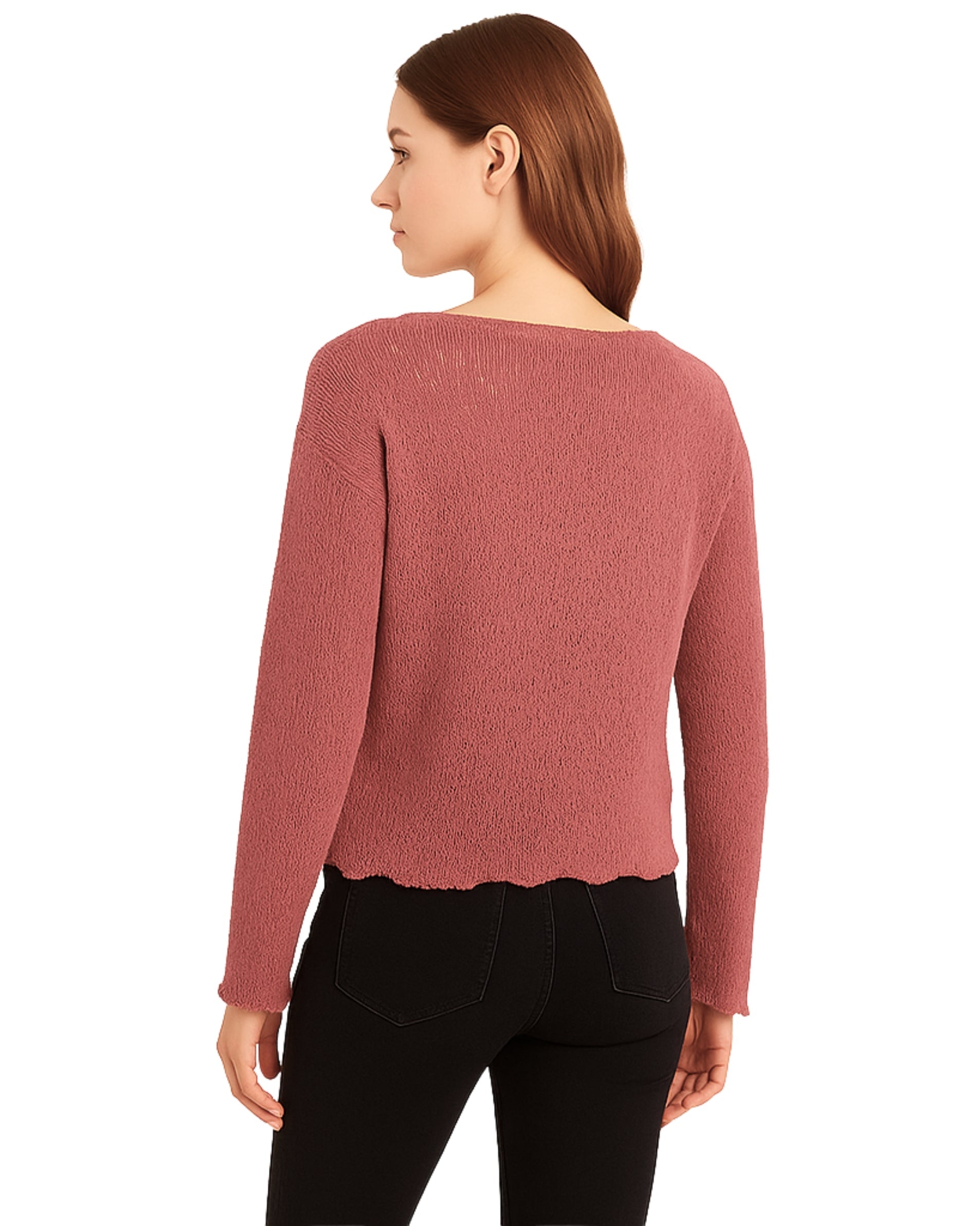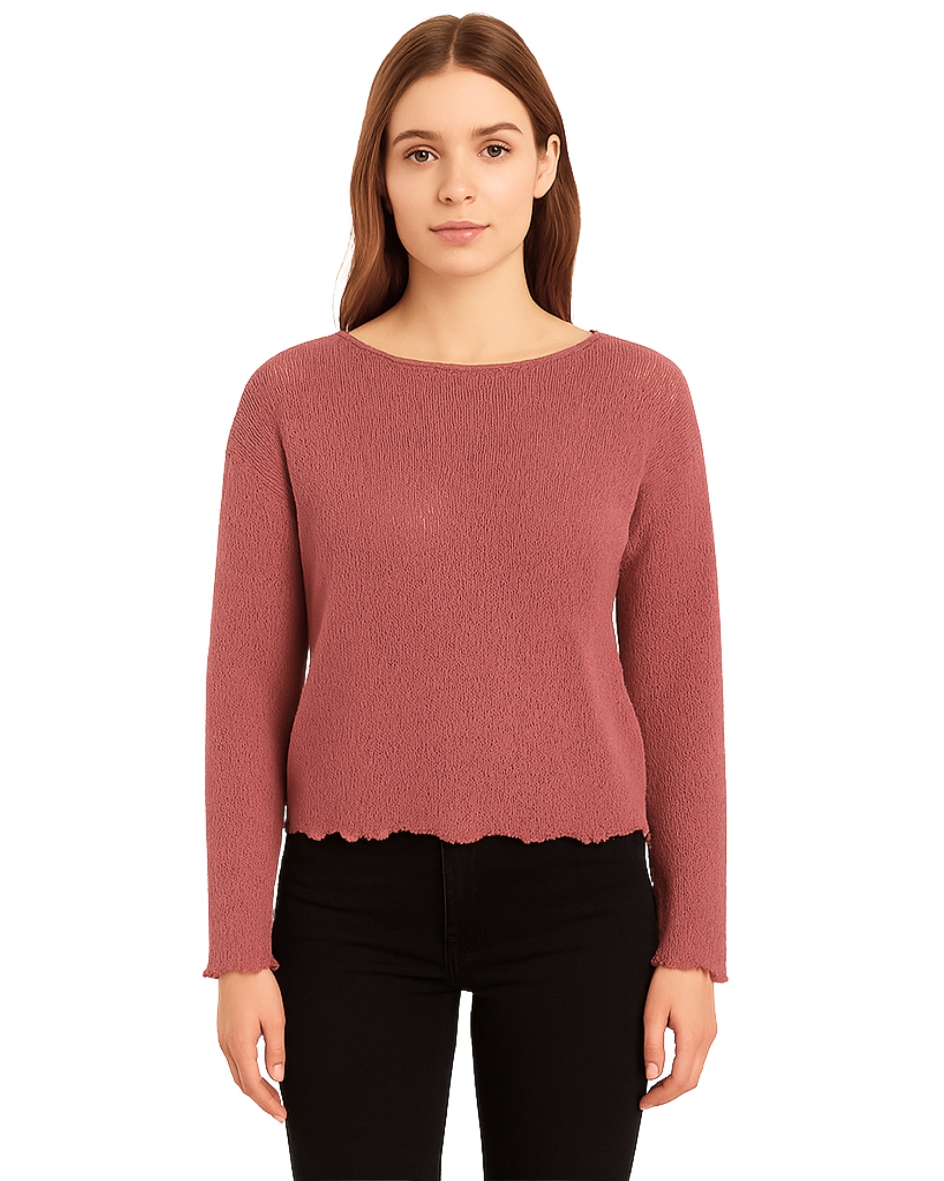 Women, Long Sleeve, Round Neck, Open Knit, Soft, Casual, 52% Polyester, 47% Cotton, 1% Viscose