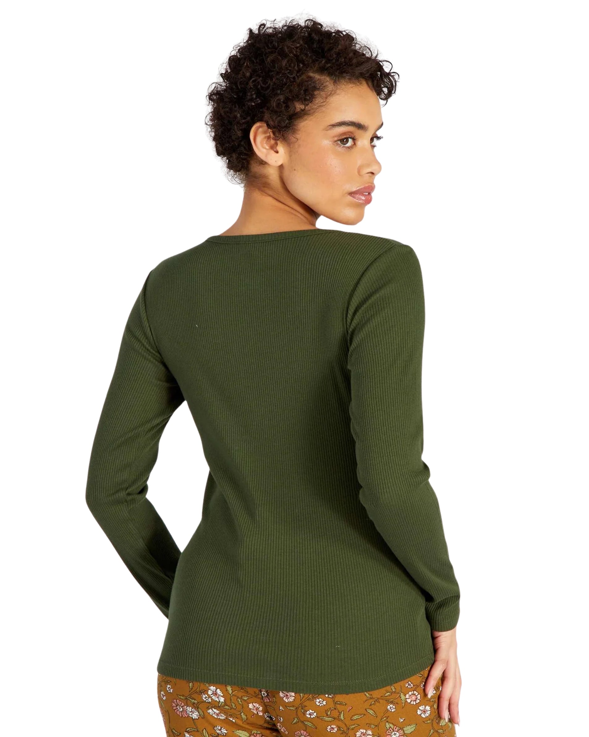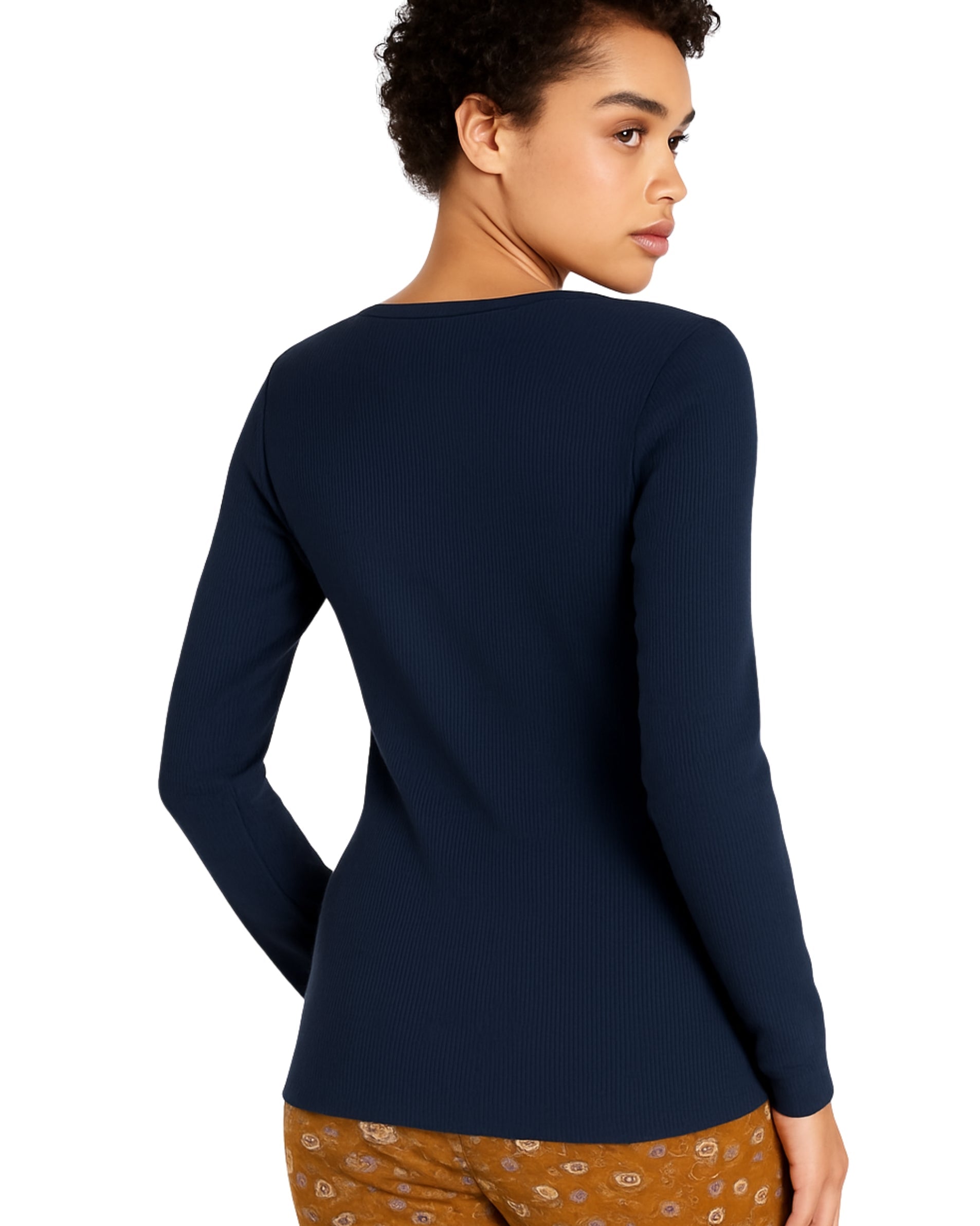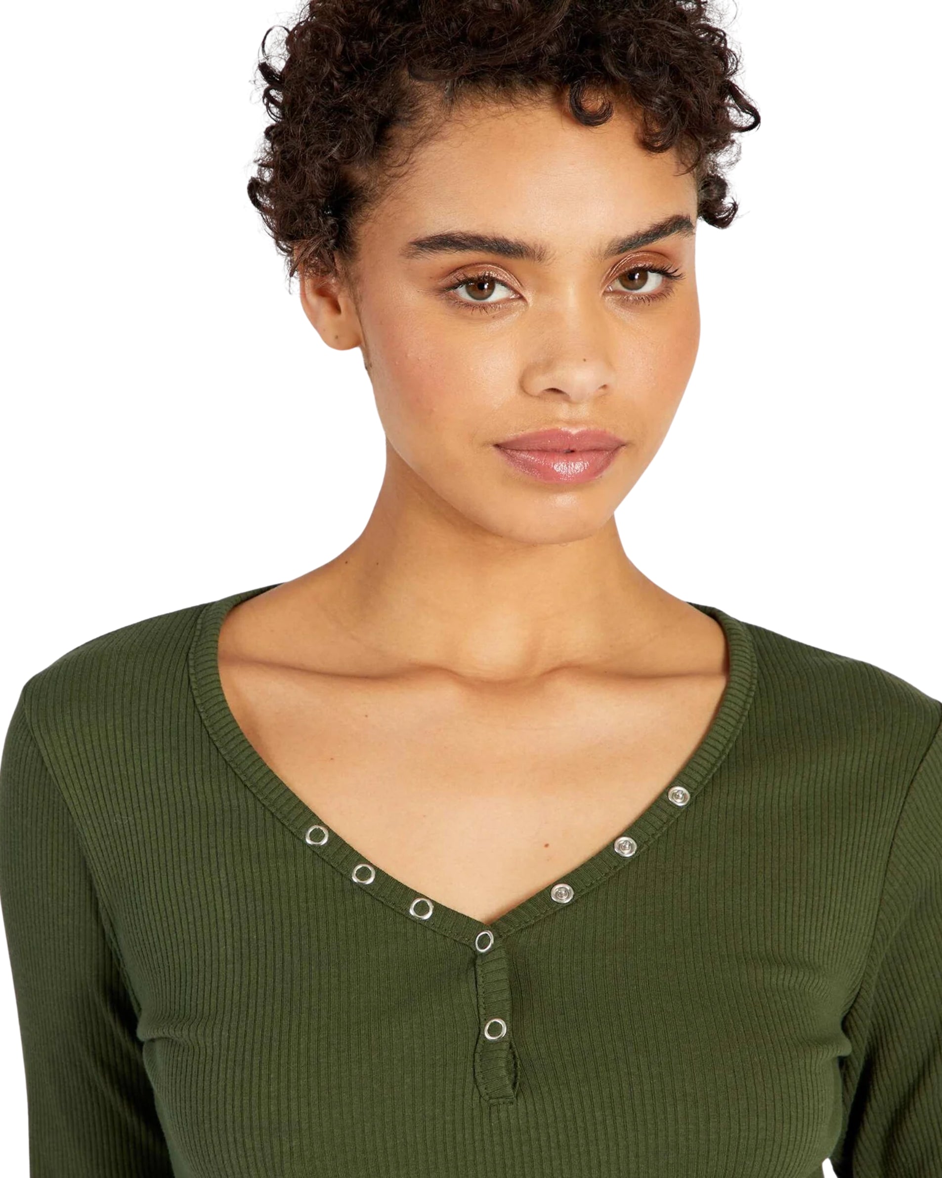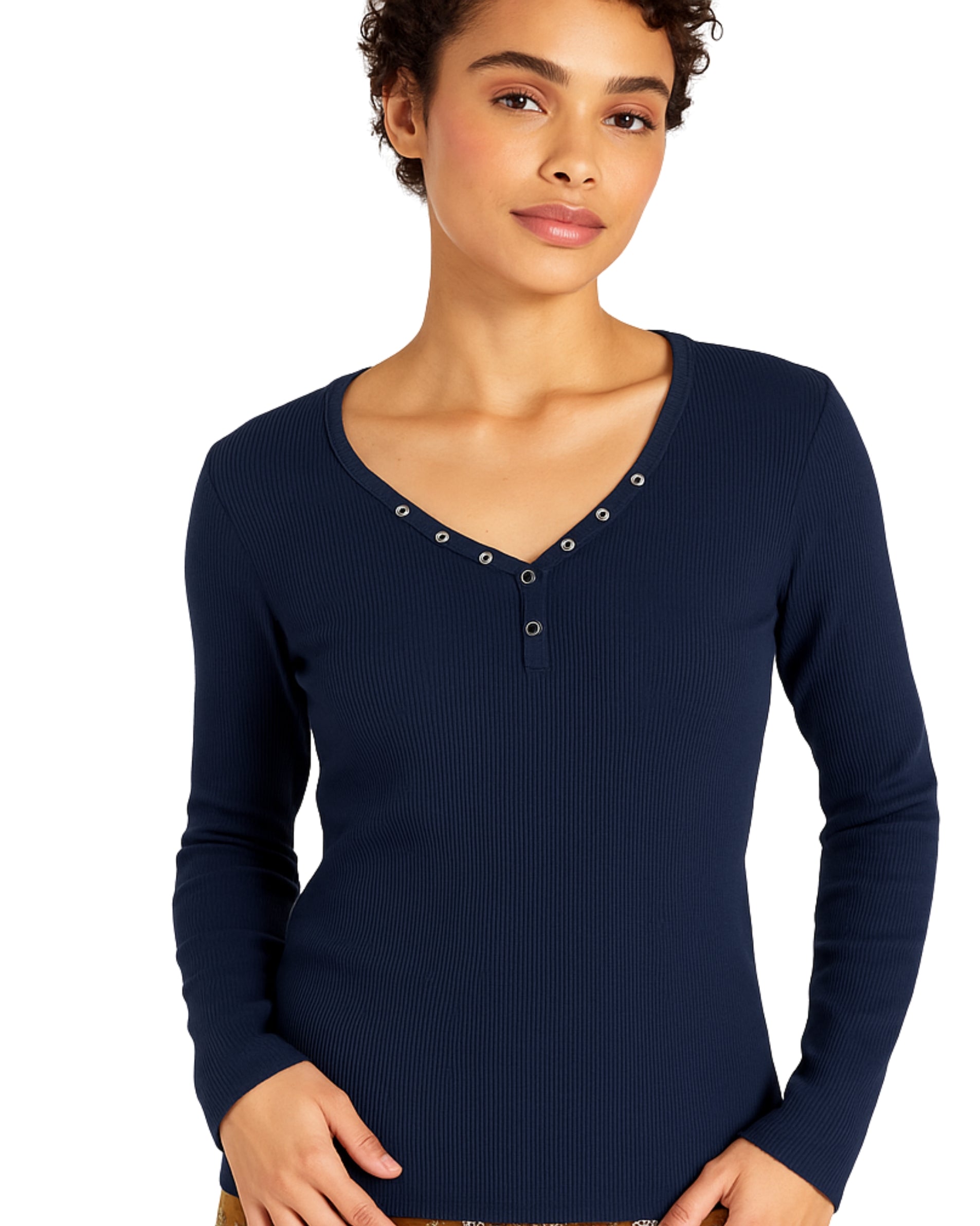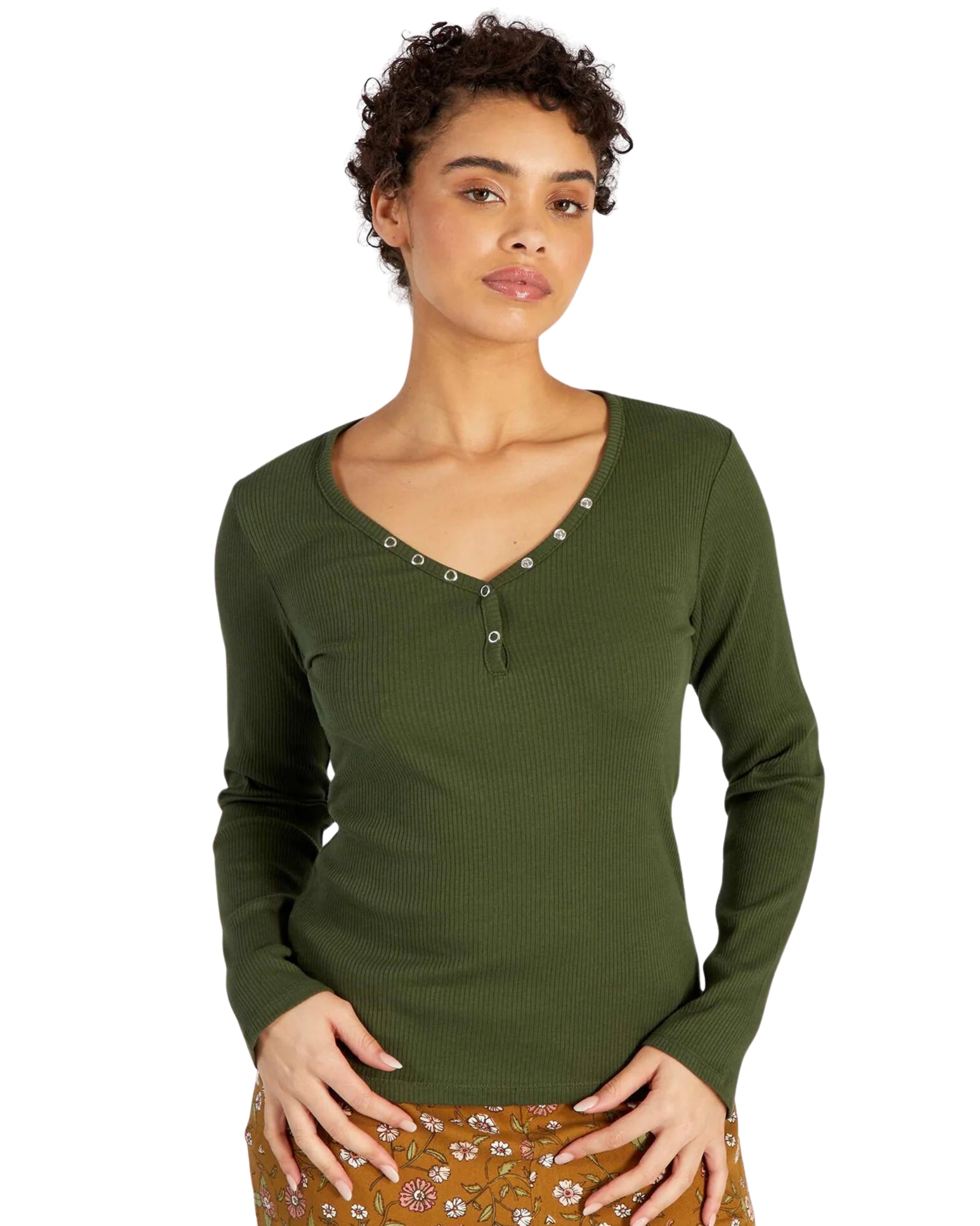 Women, Long Sleeve, V Neck, Snap Button, Rib, Fit, Soft, Casual, 100% Cotton