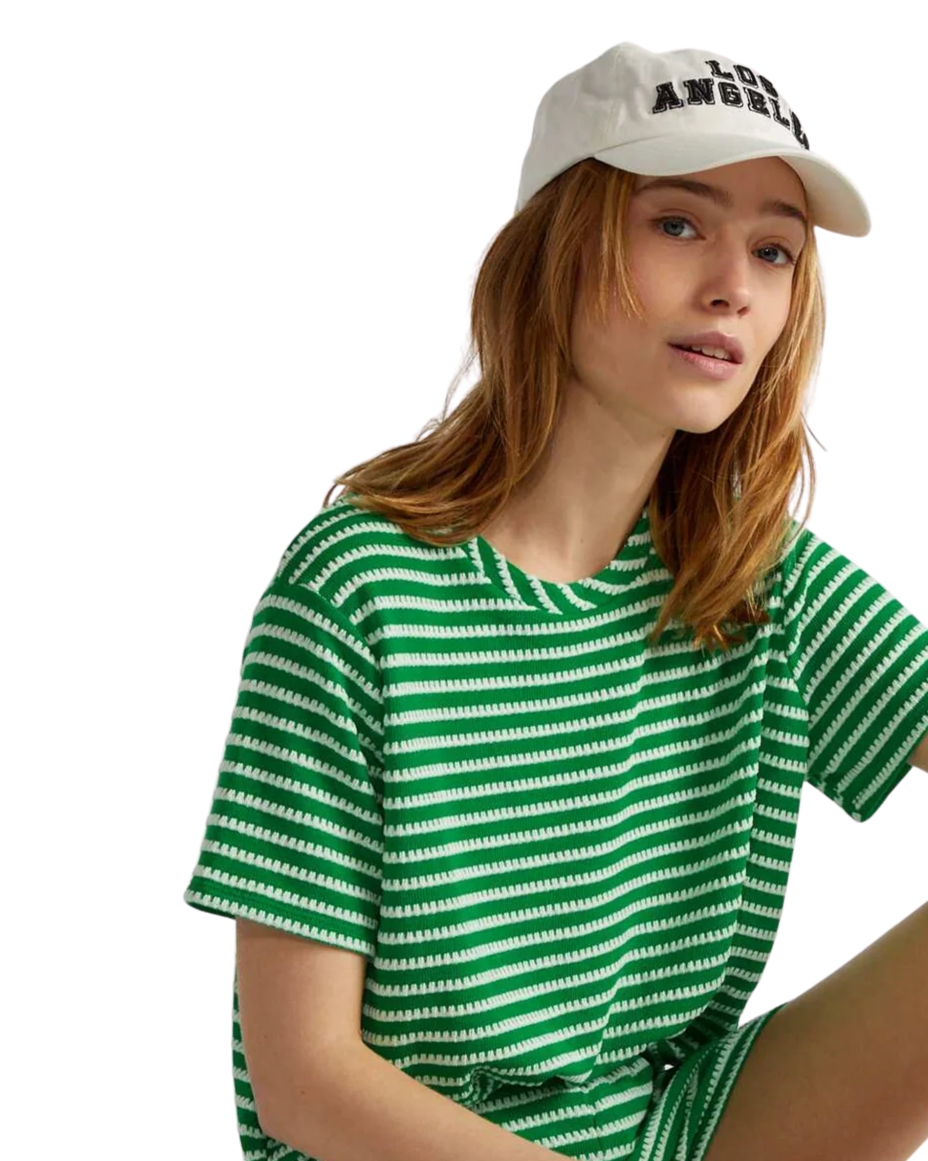 Women, Short Sleeve, Round Neck, Stripe, Comfort, Stylish & Casual, 97% Polyester, 3% Elastane