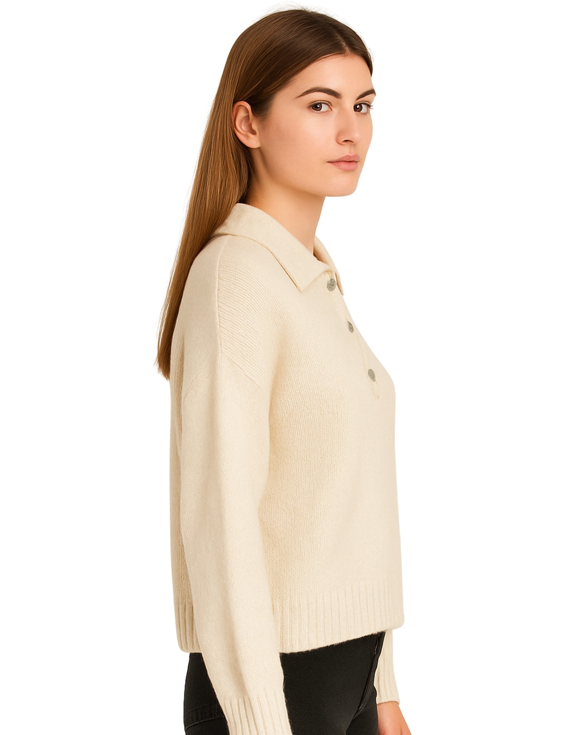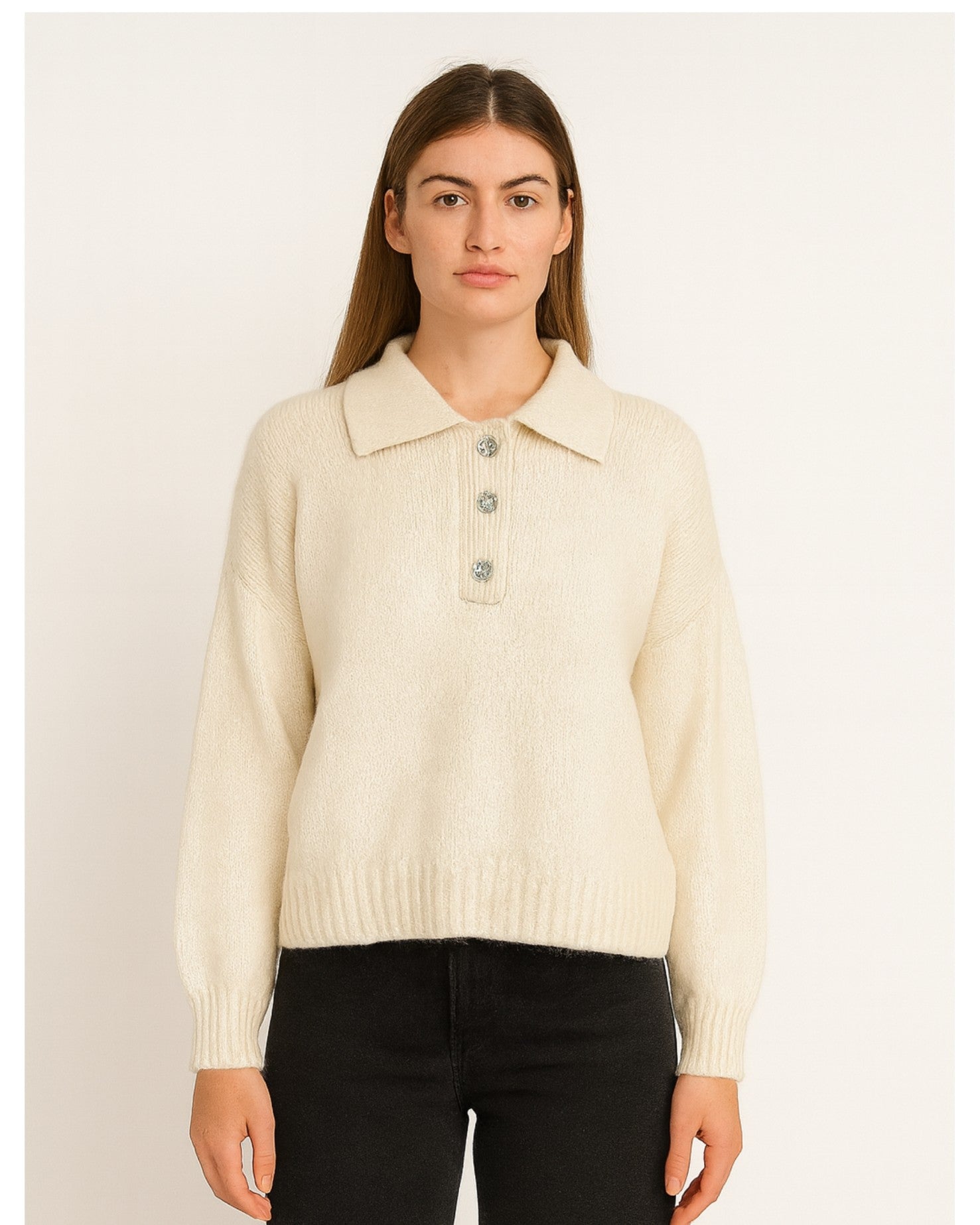 Women, Casual, Soft, Comfort, High Neck, Smooth, Long Sleeve, Warm, Strass Buttons Closure On Neck, Stlish