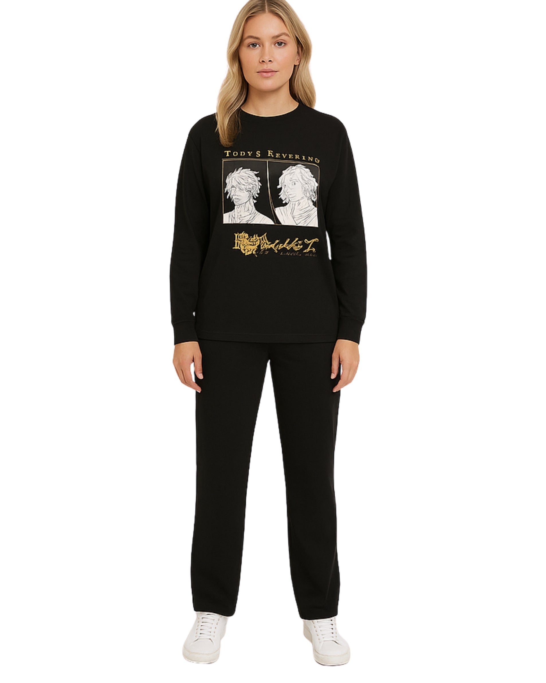 Women, Long Sleeve, Crew Neck, Graphic, Soft, Relaxed Pant, 100% Cotton