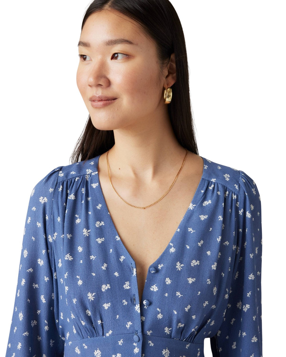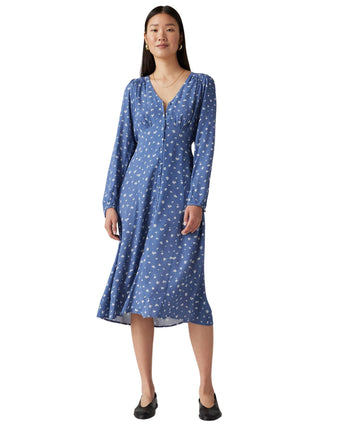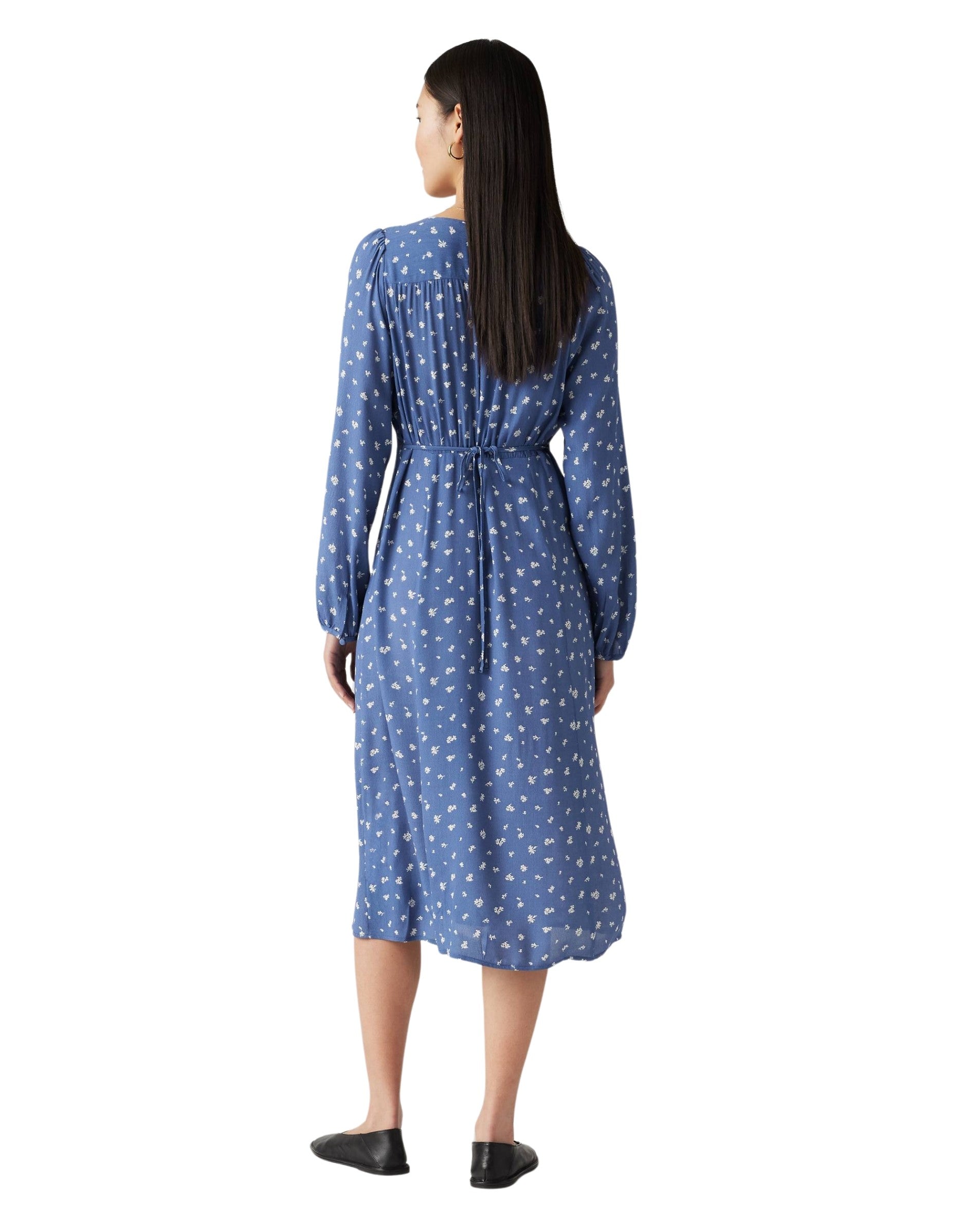 Women, Long Sleeve, V Neck, Button Closure, Back Tie, Ankle Skimming Length, Standard, Fot, Floral, Soft, 100% Viscose