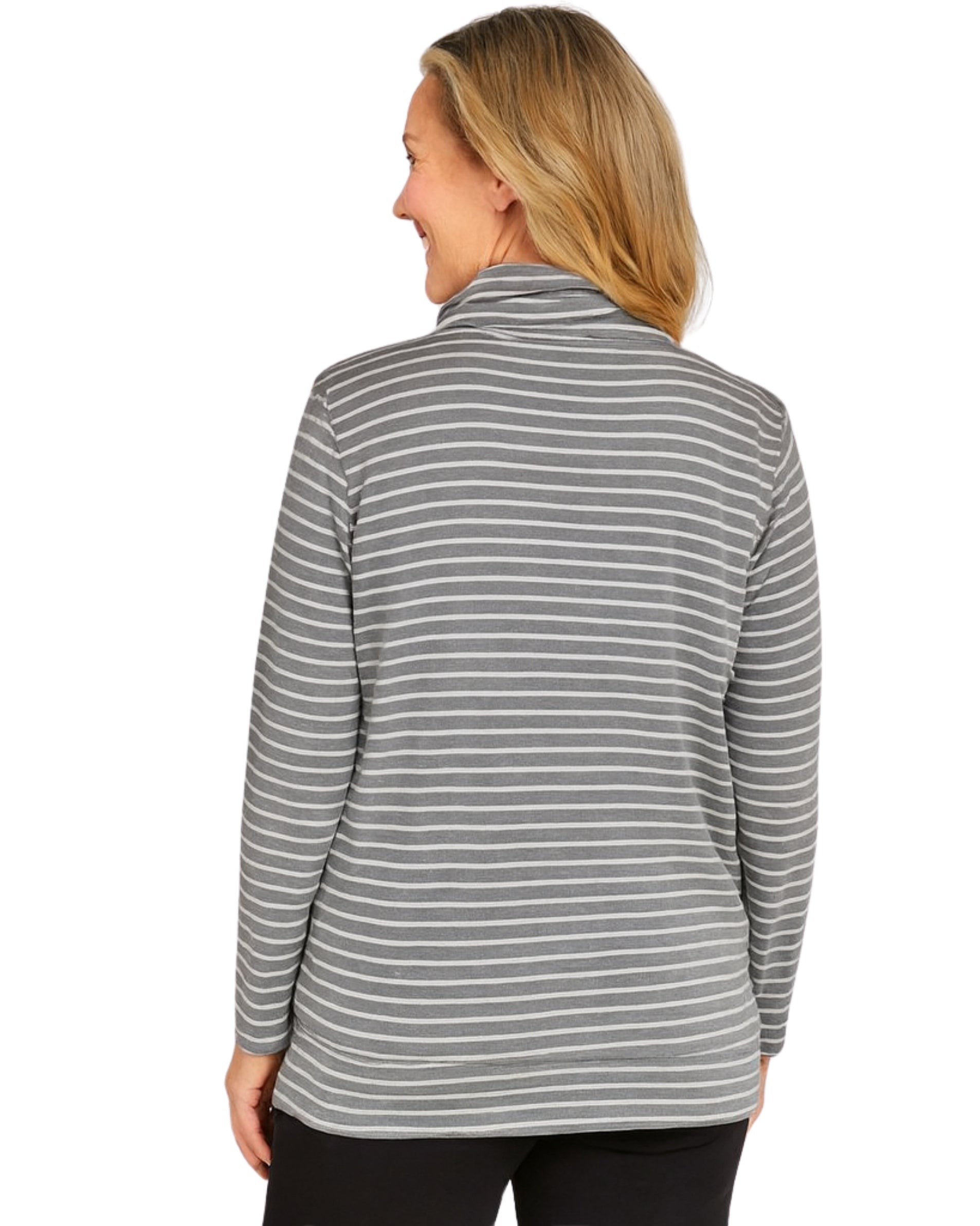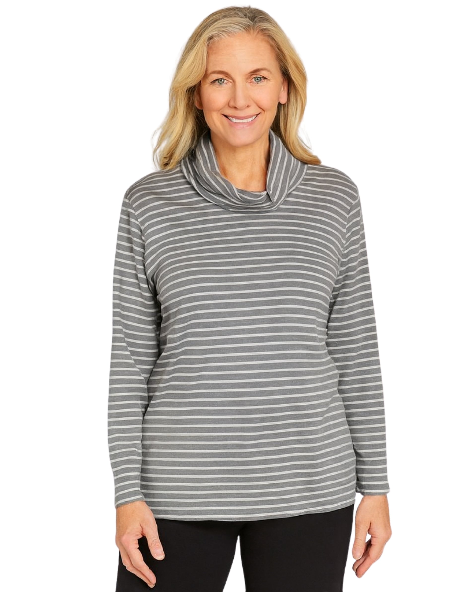 Women, Long Sleeve, Turtle neck, Stripe, Smoked Heather, Soft, Slit Side, Stylie, 95% Rayon, 5% Spandex