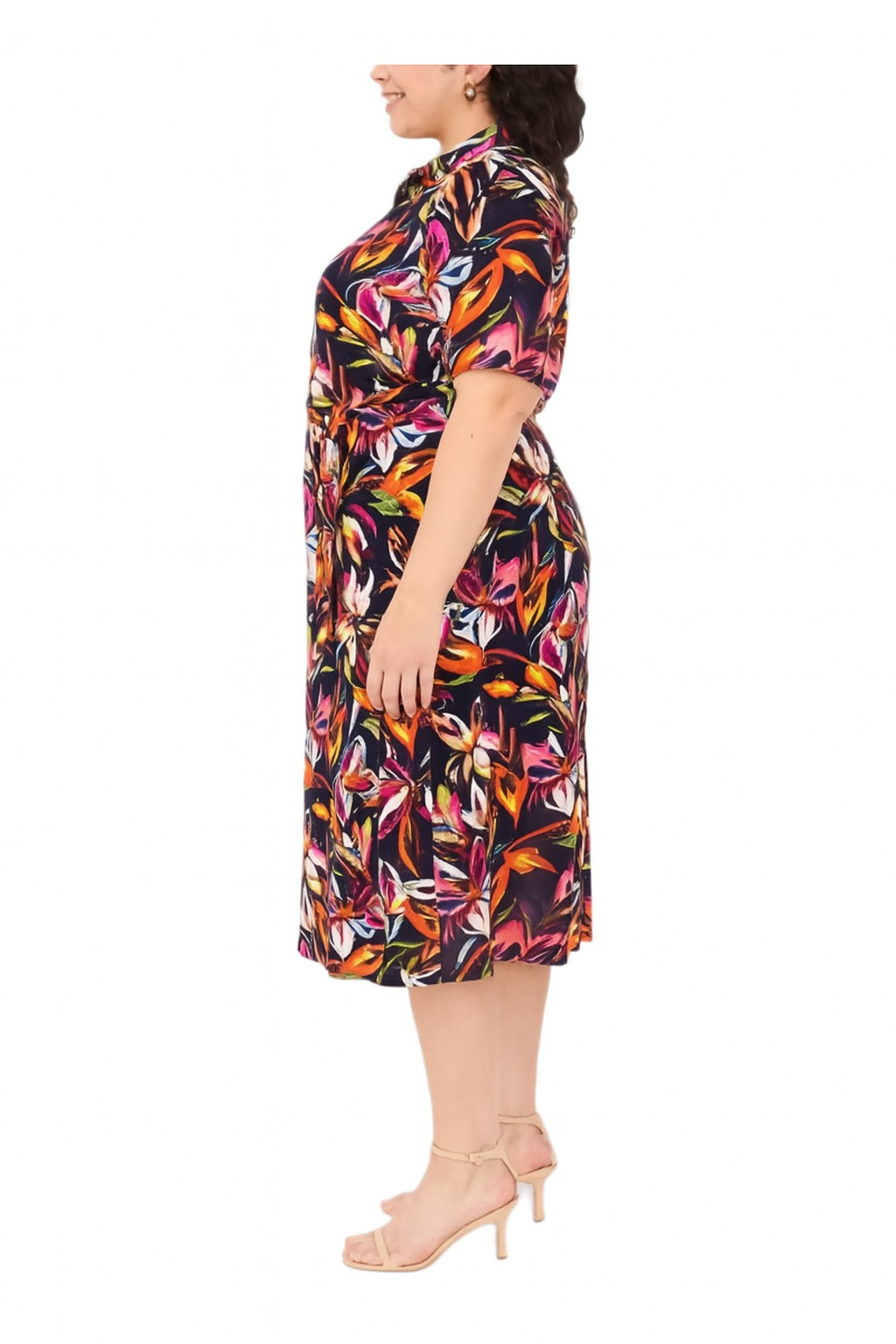 Women, Casual, Comfort, V Neck, Printed, Design, Zipper Neck Closure, Short Sleeve, Belted Included