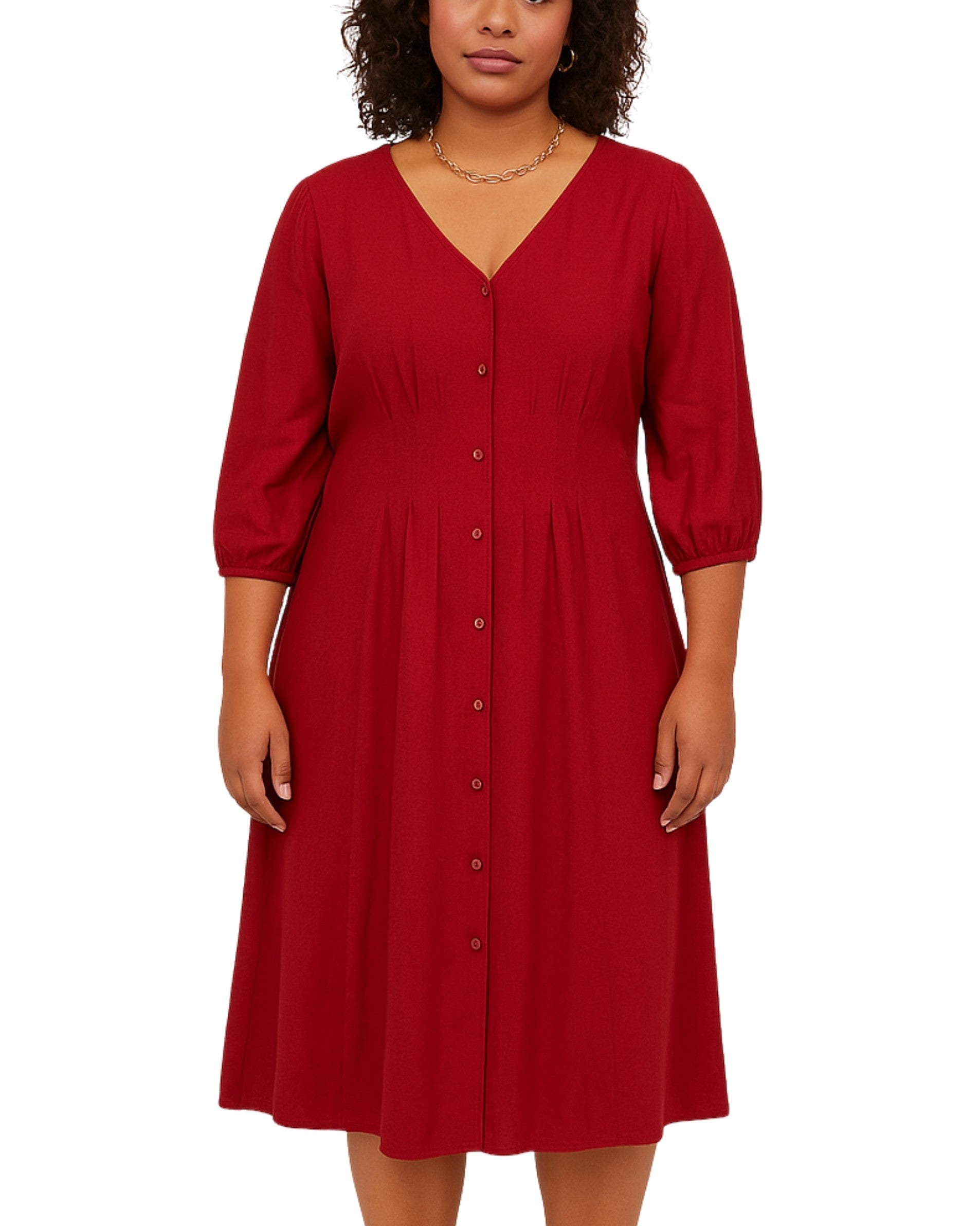 Women, 3/4 Sleeve, V Neck, Button Closure, Ruffle, Relaxed, Soft, Casual, 100% Polyester