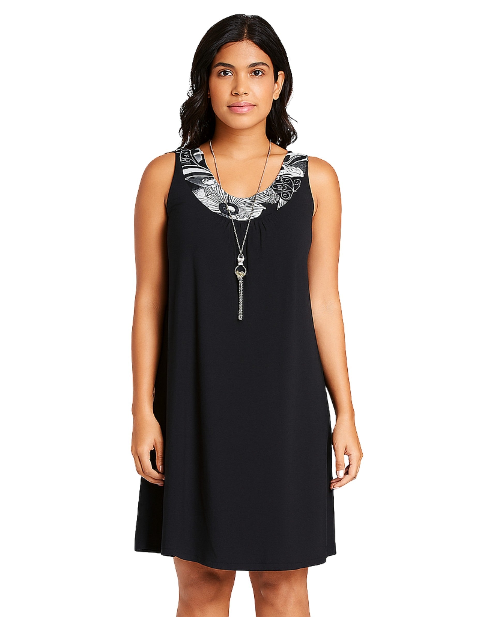 Women, Pull On, Sleeveless, Round Neck, Floral Neckline, Necklace Included, Relaxed, Fit, Stylish & Casual, 95% Polyester, 5% Spandex