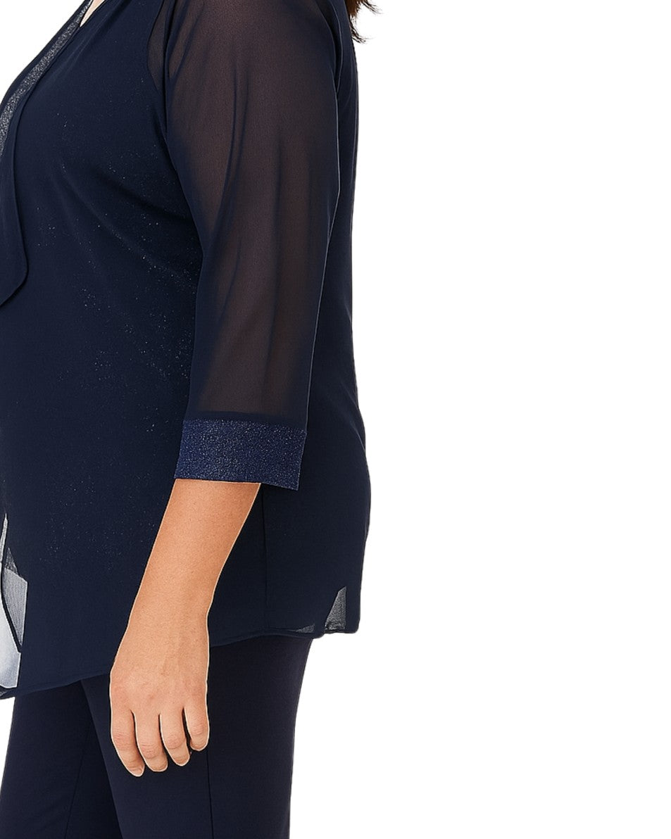 Women, 3/4 Sleeve, Front Open, Chiffon, Glittered Cuffs, Comfortable, Lightweight, and Breathable Fabric, 100% Polyester