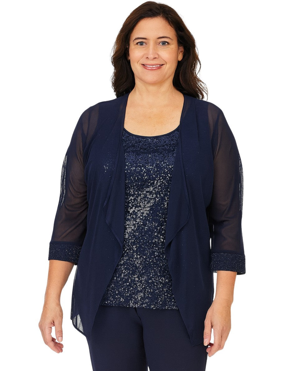 R & M RICHARDS Women Glittered Cuffs Cardigan