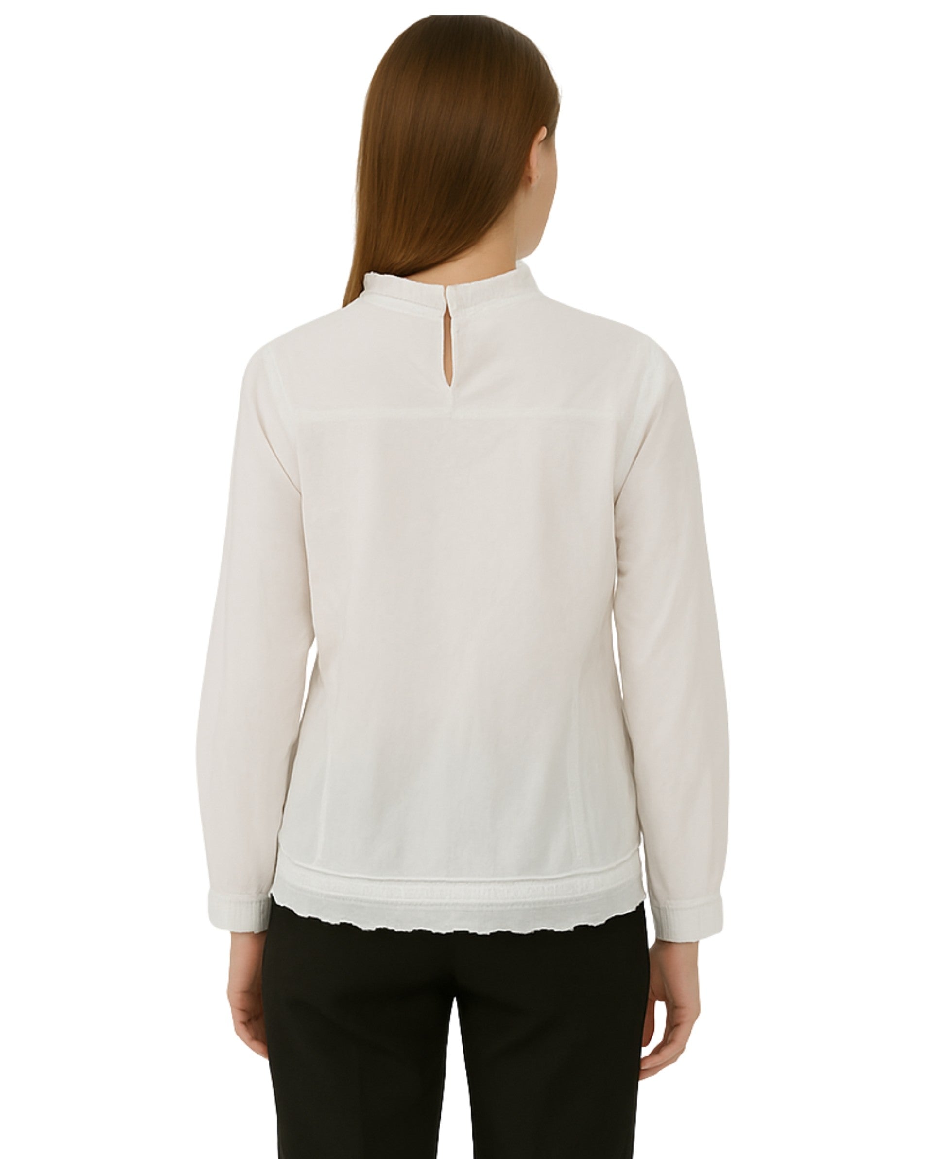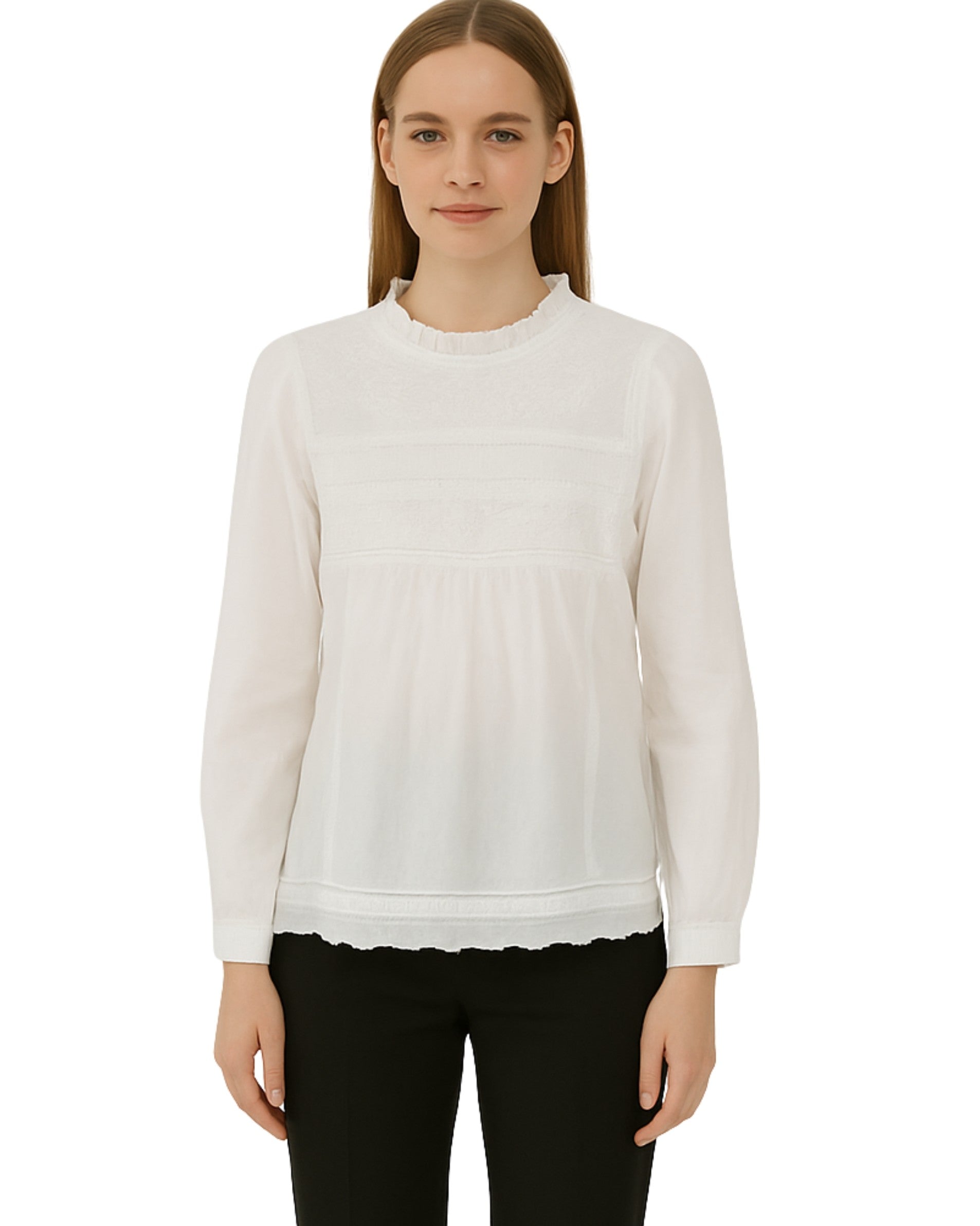 Women, Long Sleeve, Crew Neck, Textured Detailing, Button Cuffs, Light, Soft, Chic, 100% Cotton