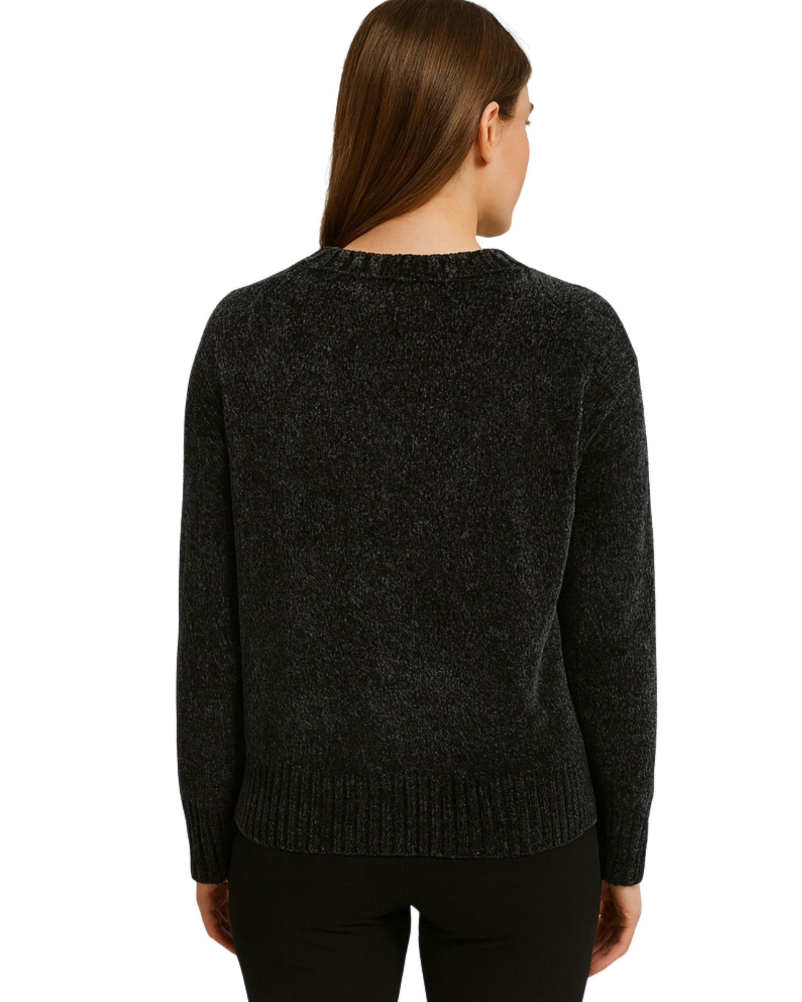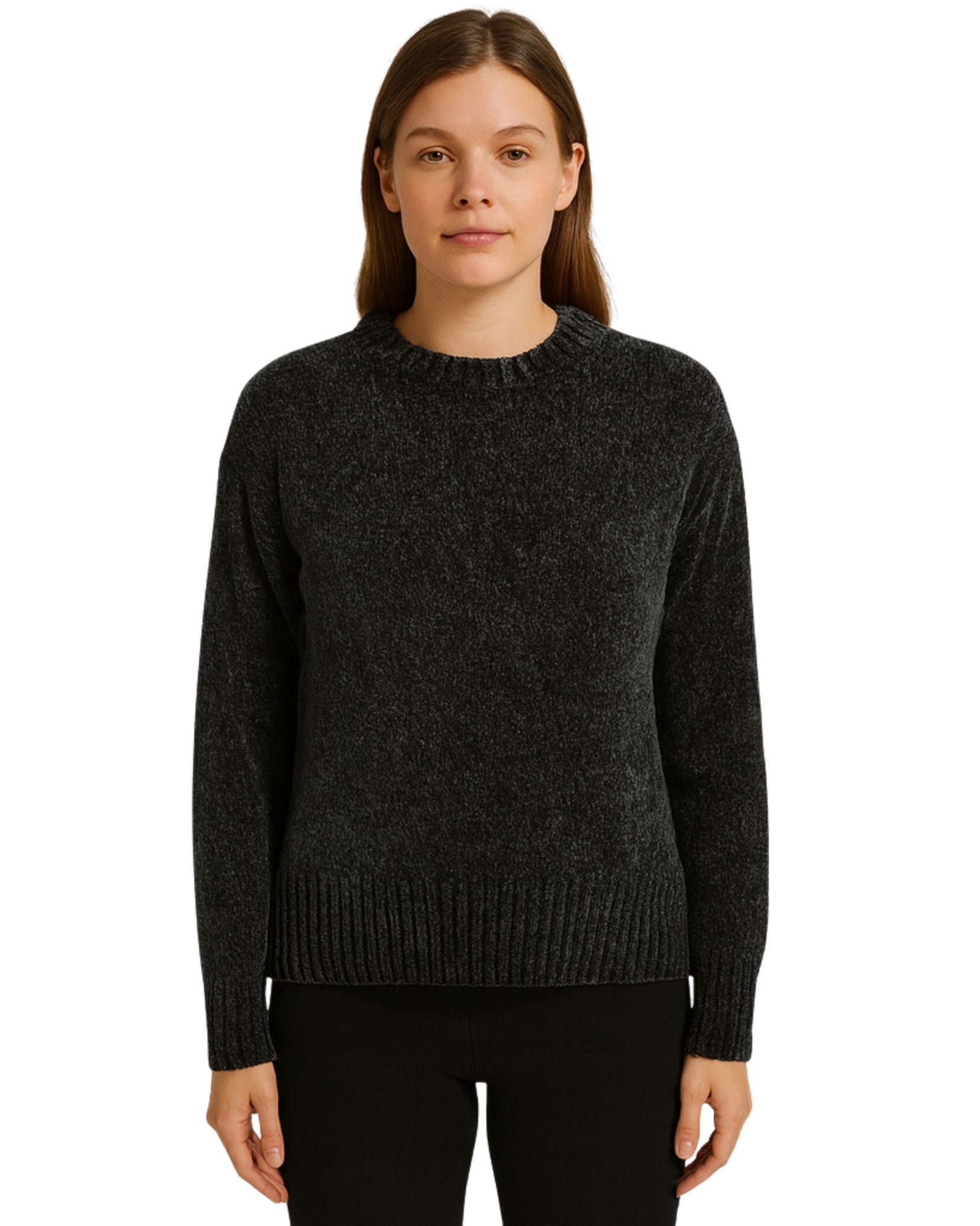 Women, Long Sleeve, Crew Neck, Ribbed Cuffs & Hem, Soft, Cozy, Warm, Causal, 100% Polyester