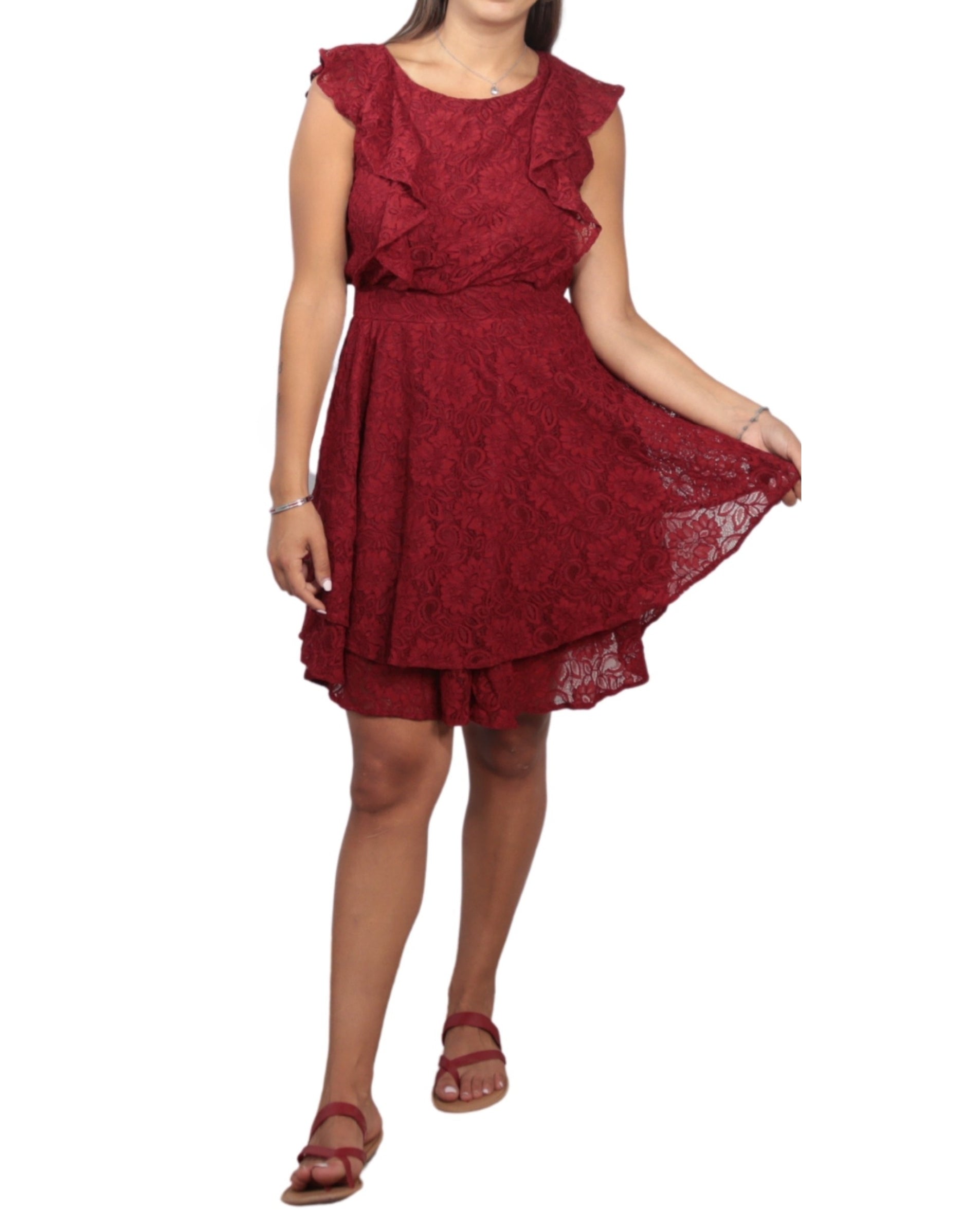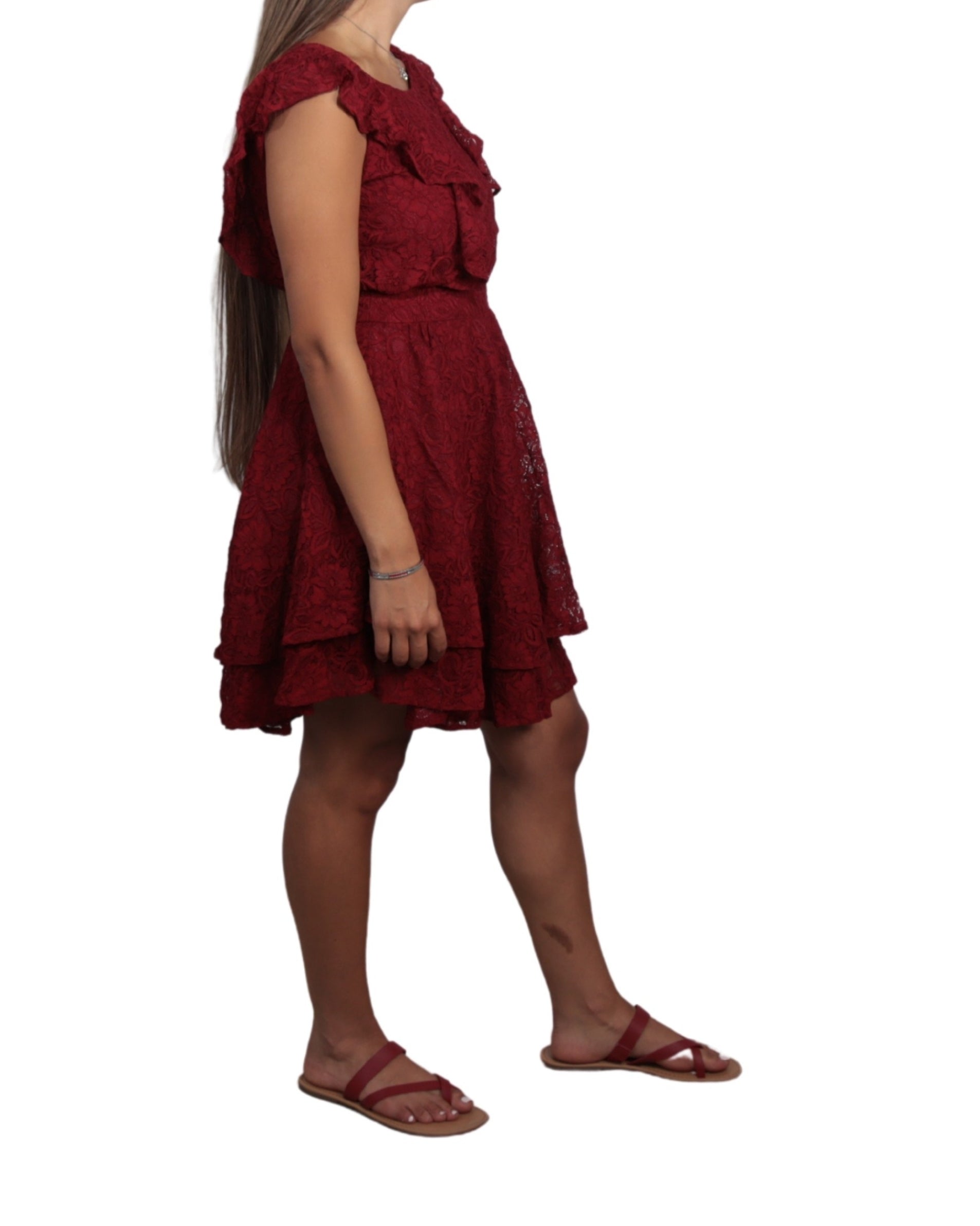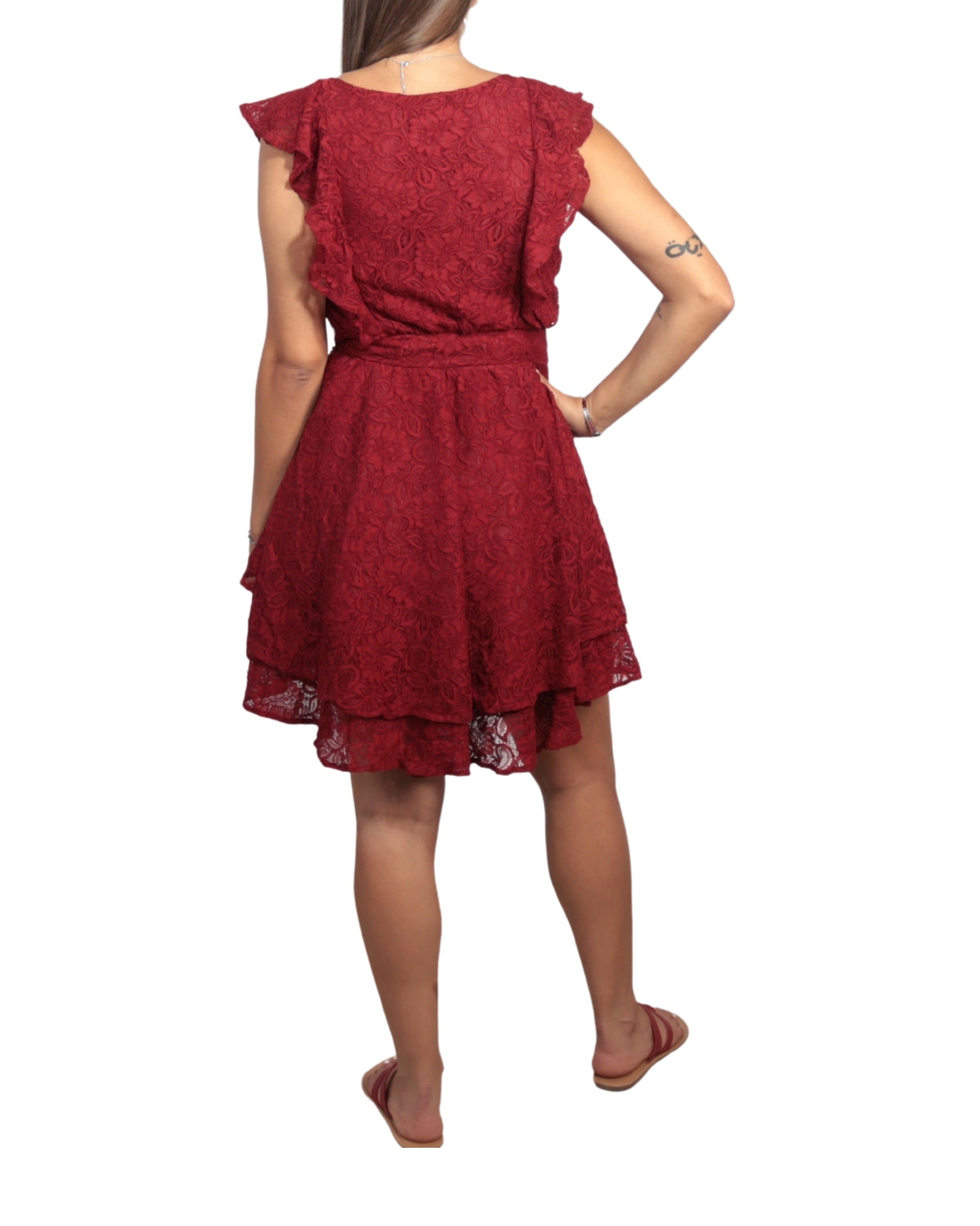 Women, Flutter Sleeve, Round Neck, Side Zipper, Embroided, Ruffle, Stylish