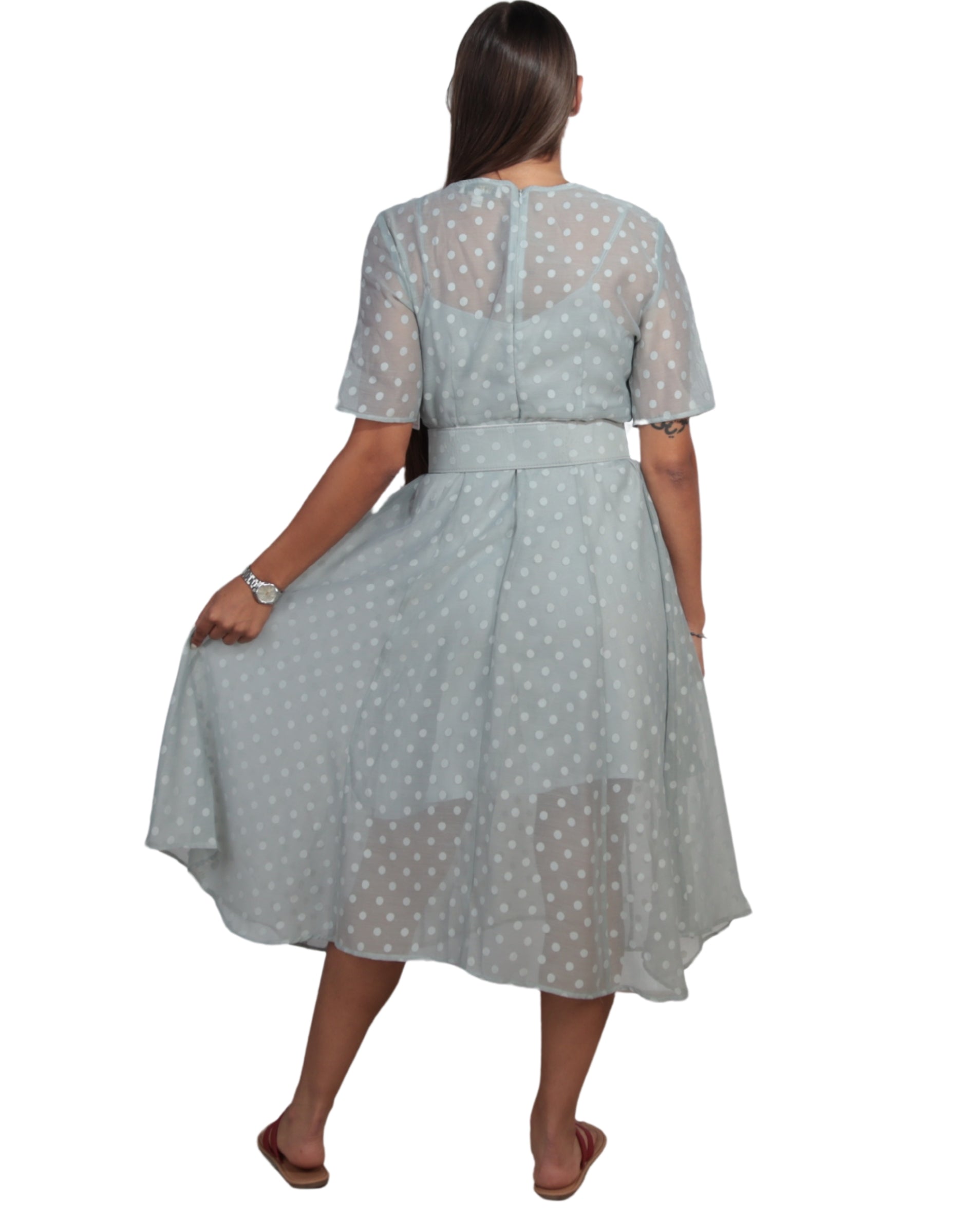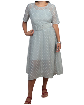 Women, Casual, Comfort, Belt Included, Design, Pointed dress, Short Sleeve, Round Neck, Back Zipper Closure