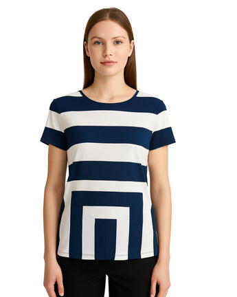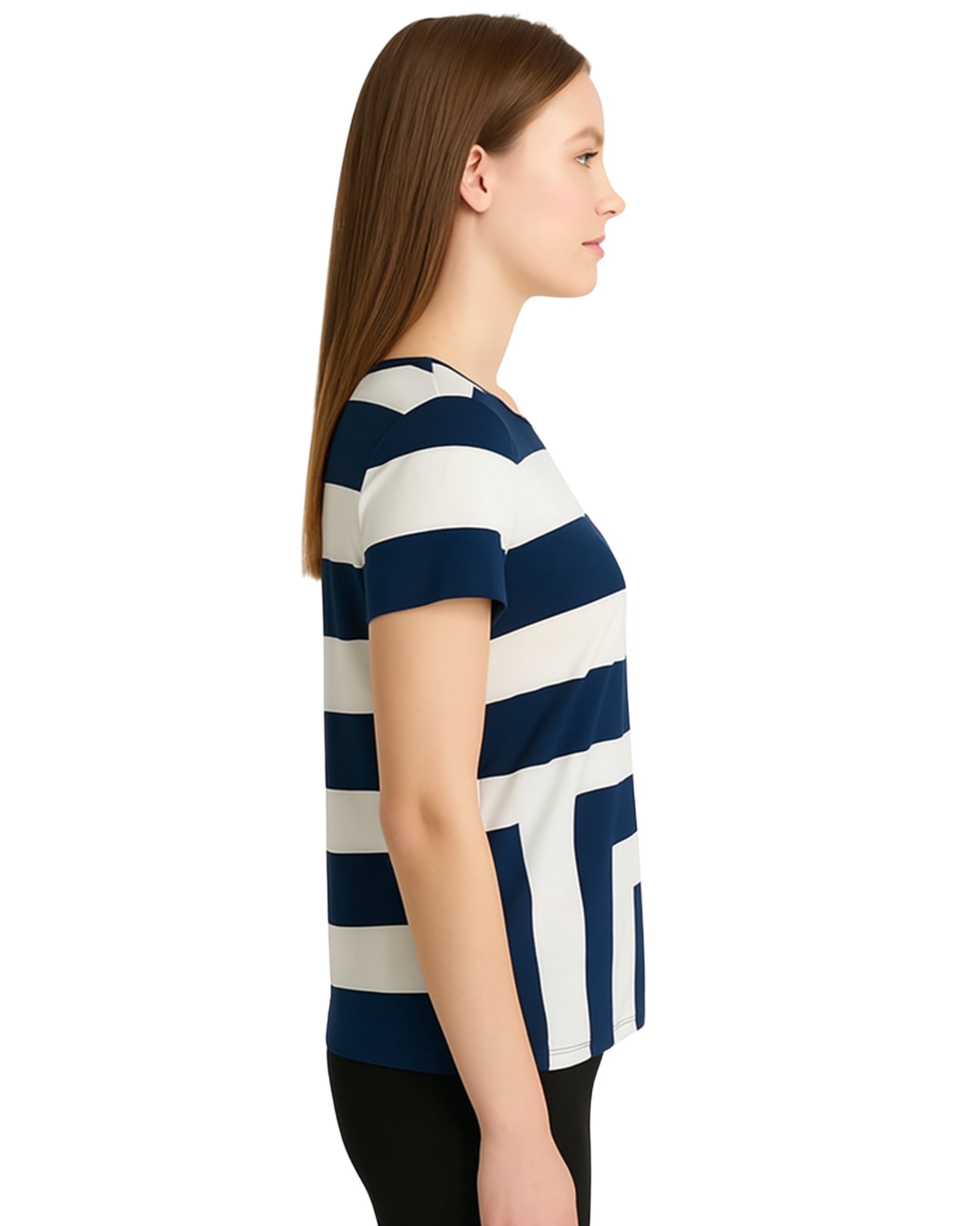 Women, Casual, Comfort, Short Sleeve, Crew neck, Designed, Stripped