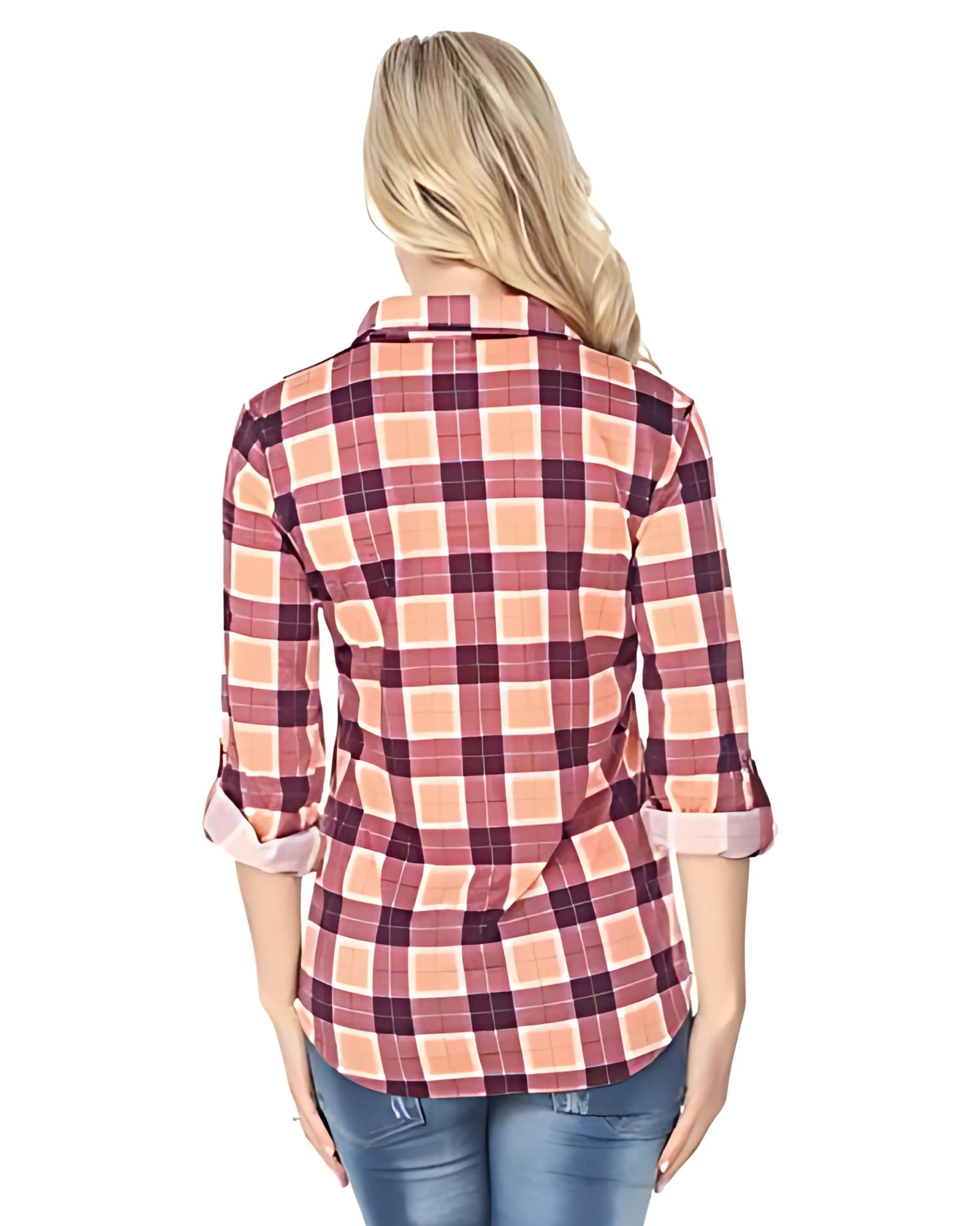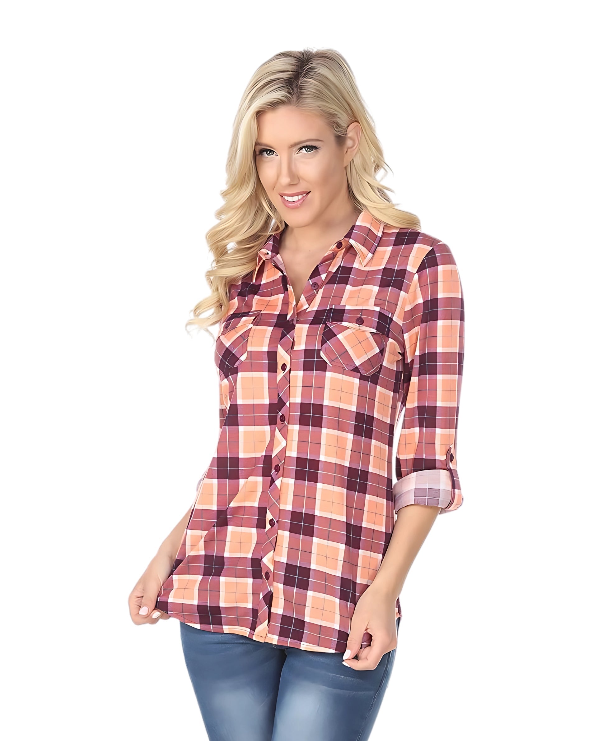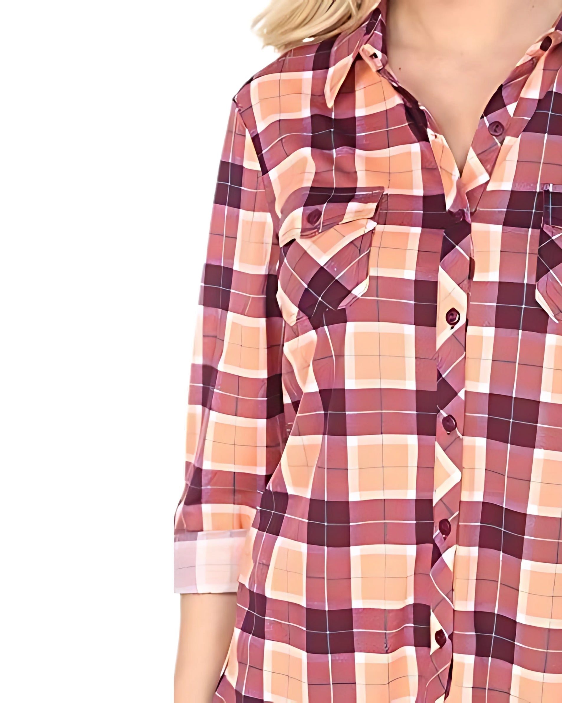 Women, Long Sleeve, Collar Neck, Button Closure, 2 Chest Pockets, Stripe, Soft, Casual