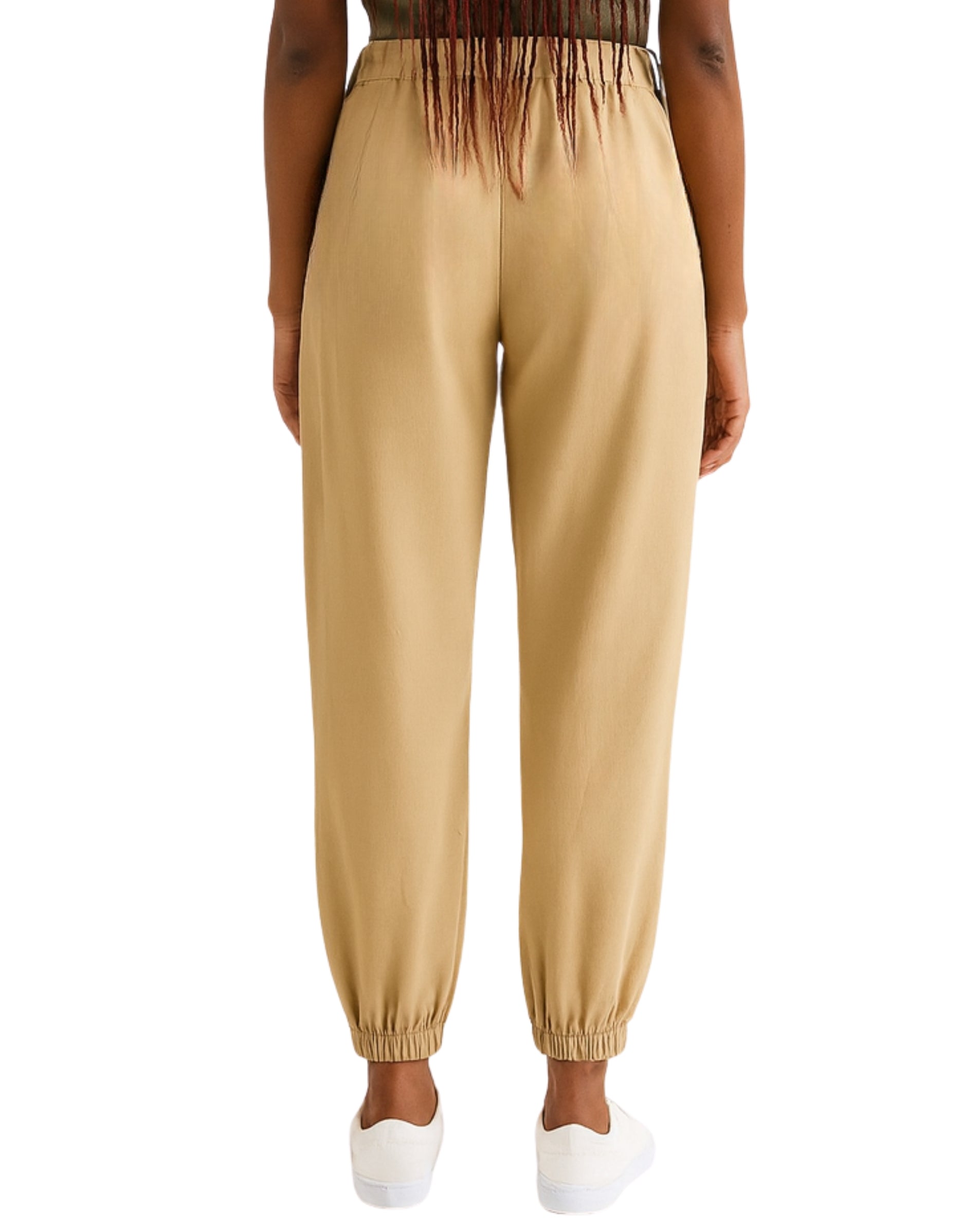 Elastic Waistband, Button Closure, 2 Side Pockets, Casual, 96% Polyester, 4% Elastane
