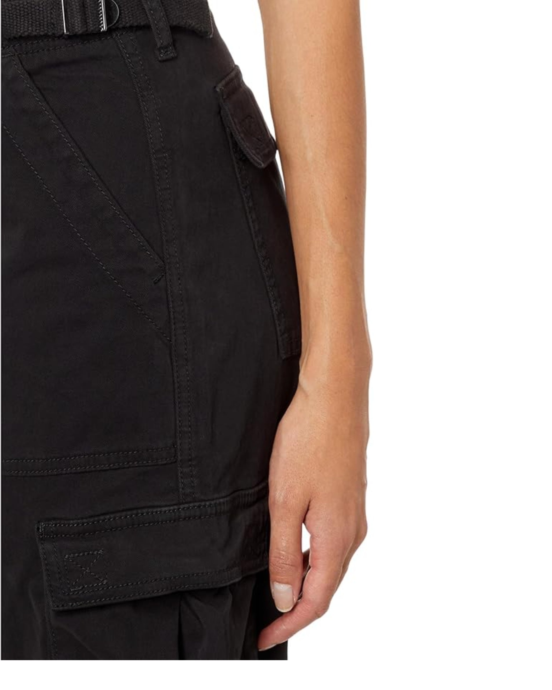 Women, Button With Zipper Closure, 4 Pockets, 2 Side Pockets, Belt Design, Cargo Casual Pant, 97% Cotton, 3% Spandex