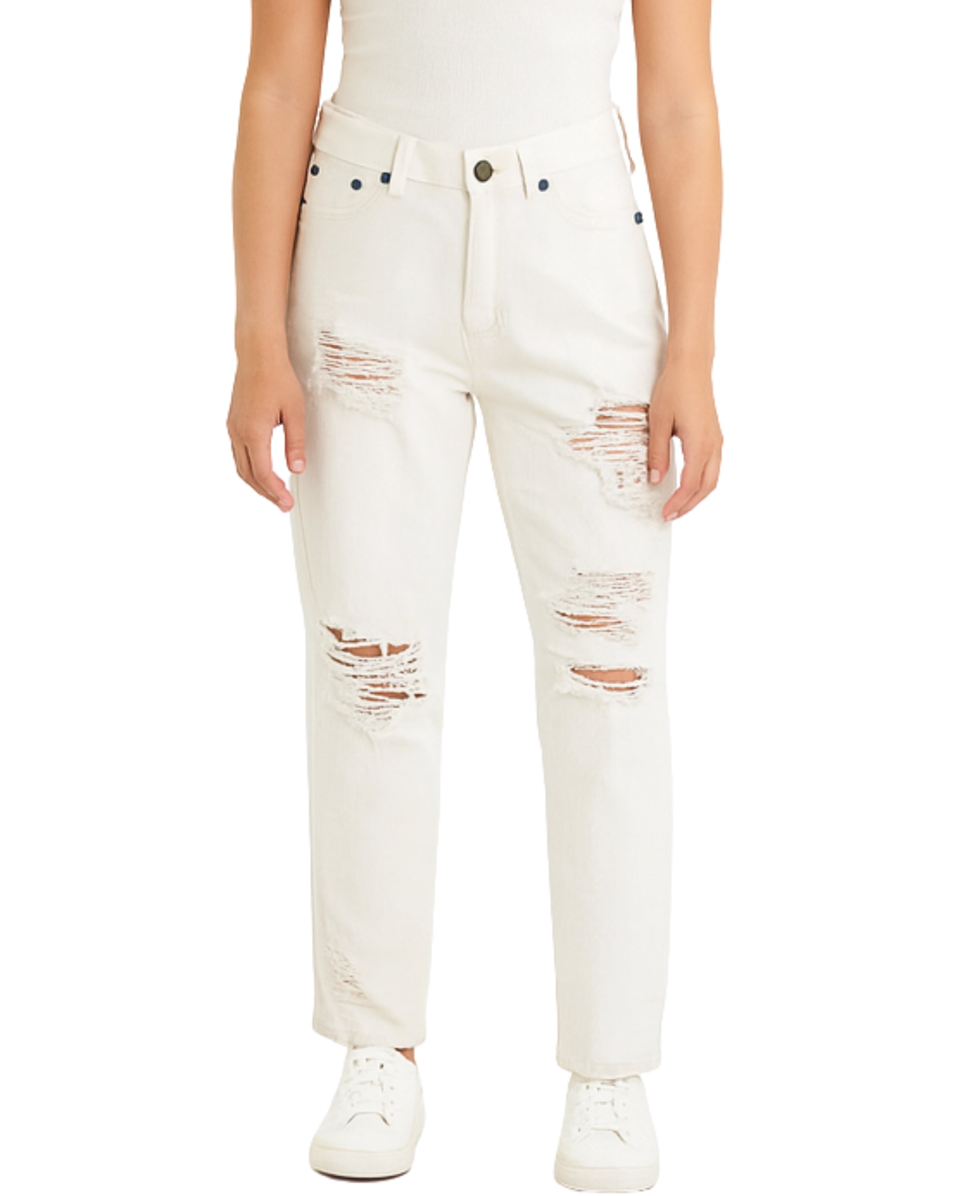 Casual, 5 Pockets, Belt Loops, Ripped , Button Closure, Zipper Closure, 100% Cotton