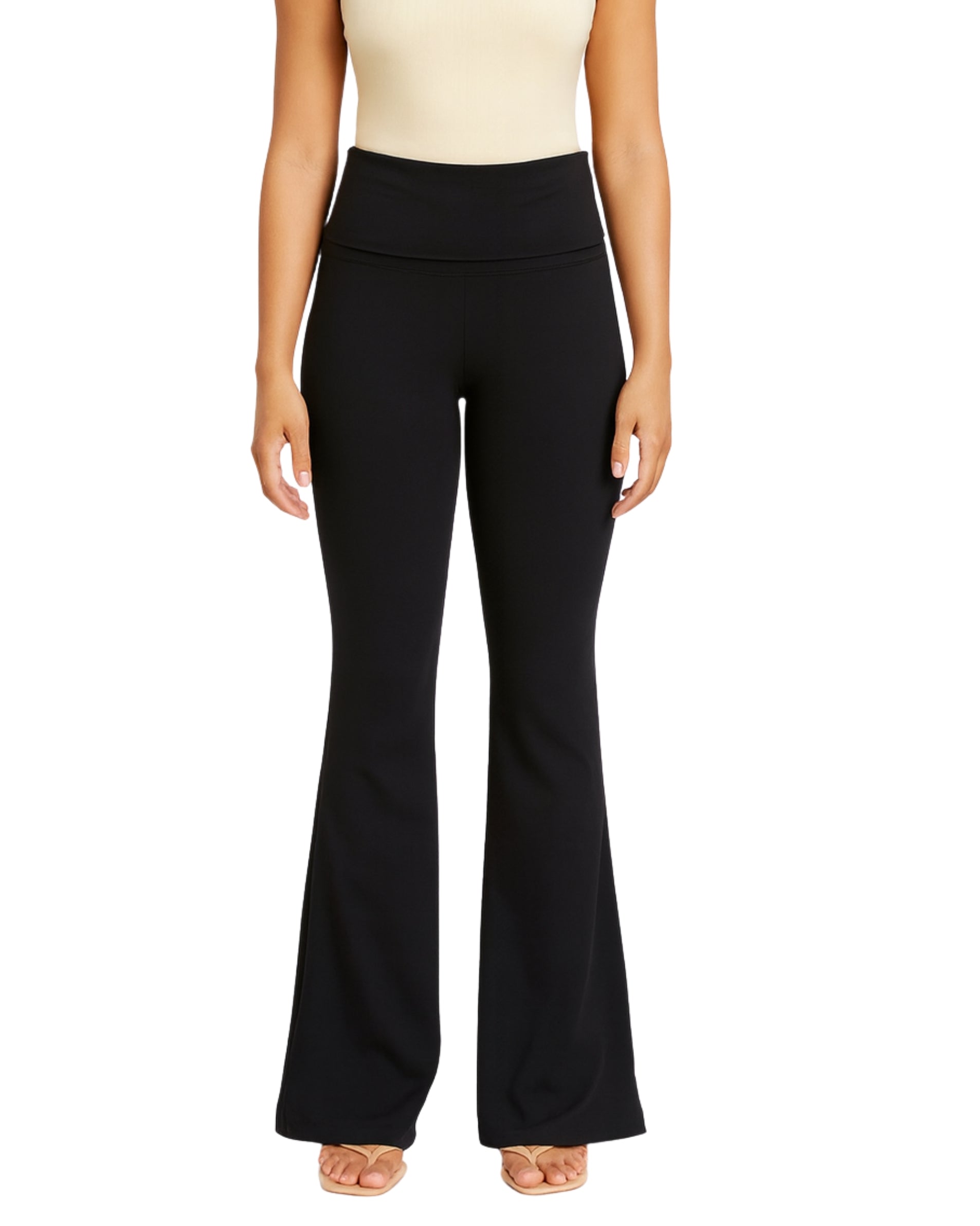 Fold over High Waisted, Super Flare Pants, Straight Up, Casual, 56% Cotton, 37% Spandex, 7% Elastane