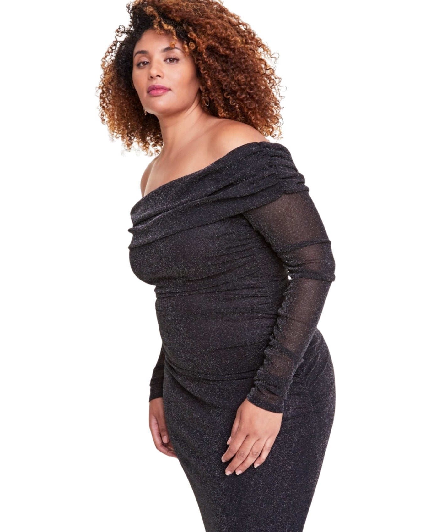 Women, Pull In, Long Sleee, Shirred Sholuder, Back Zipper, Glittery Glow, Fitted, Chic & Stylish, 100% Polyester