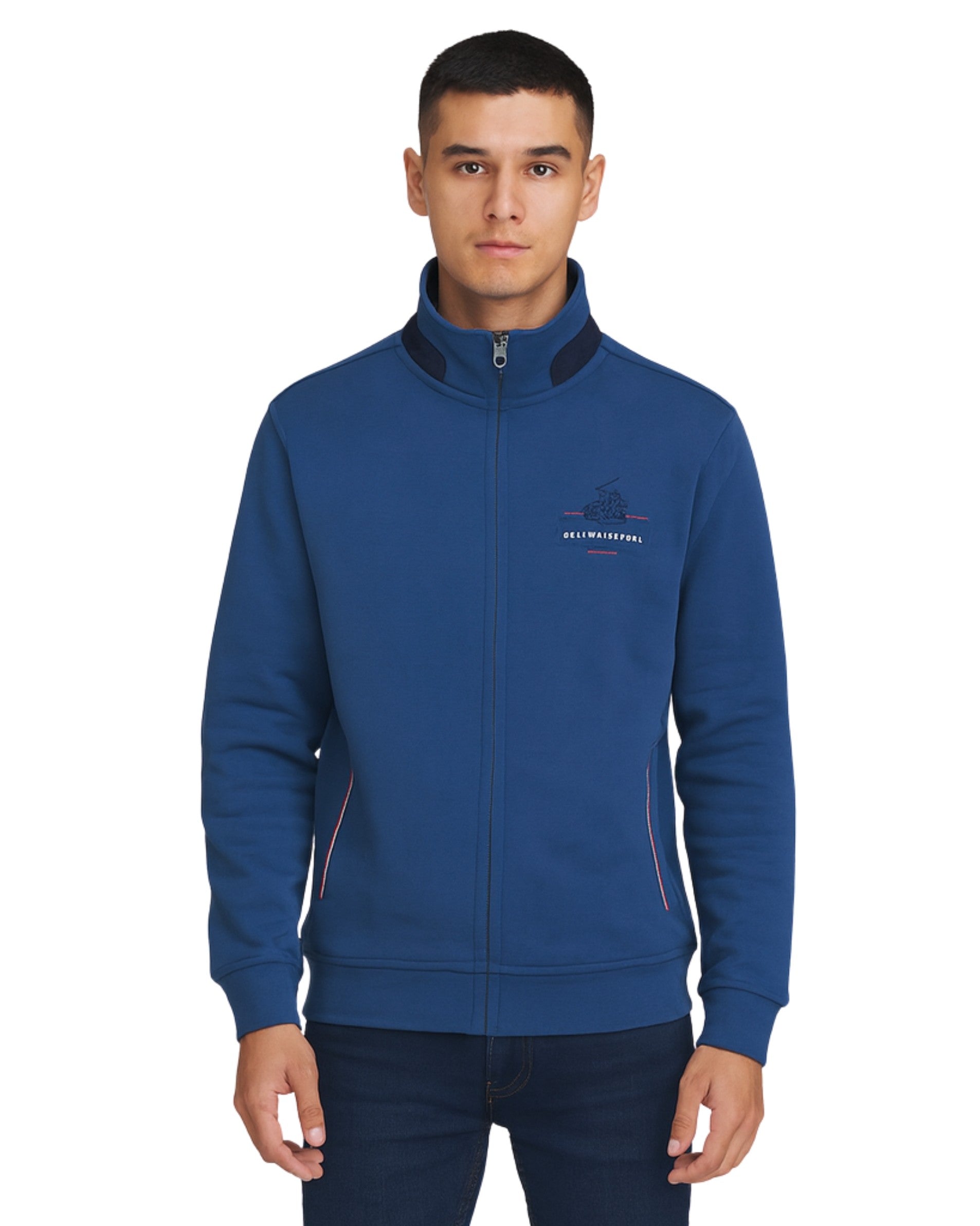 Men, Long Sleeve, Crew Neck, back Neck Logo Sign, Full Zipper Closure, 2 Pockets, Fleece, Warm, Casual, 60% Cotton, 40% Polyester