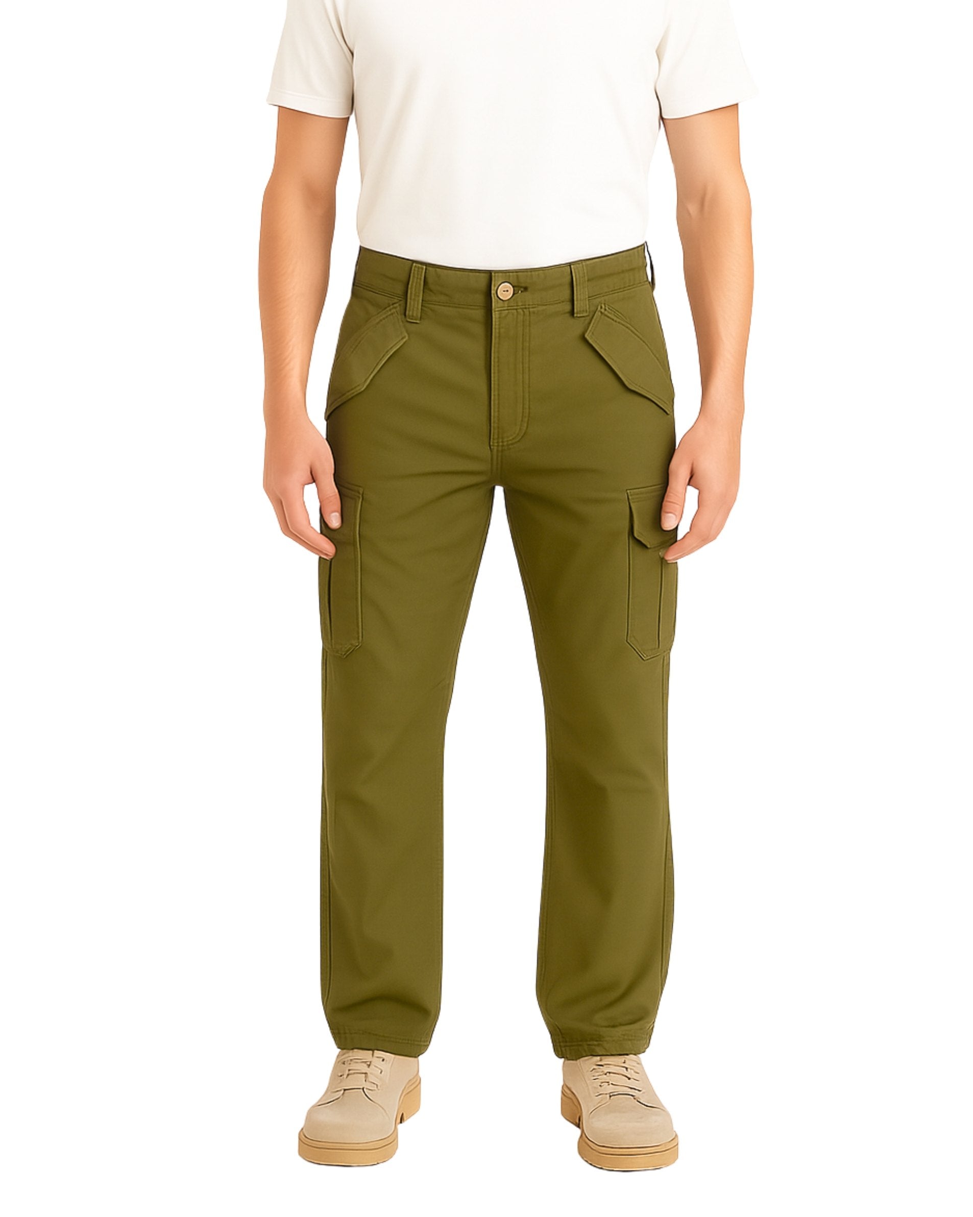 Men, Button With Zipper Closure, Side & Thighs Flap Pockets, 2 Back Pockets, Straight, Soft, Casual Cargo & Stylish, 97% cotton, 3% Elastane