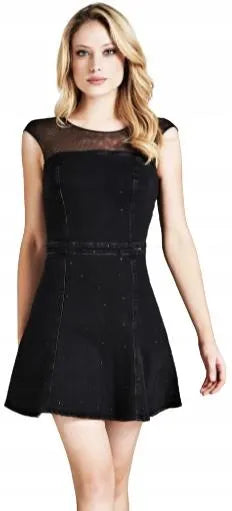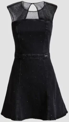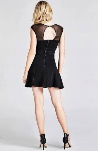 Women, Chiffon Sleeve, Crew Neck, Mini Dress, Back Zipper Closure, Back Button Closure, Open Back, Strauss