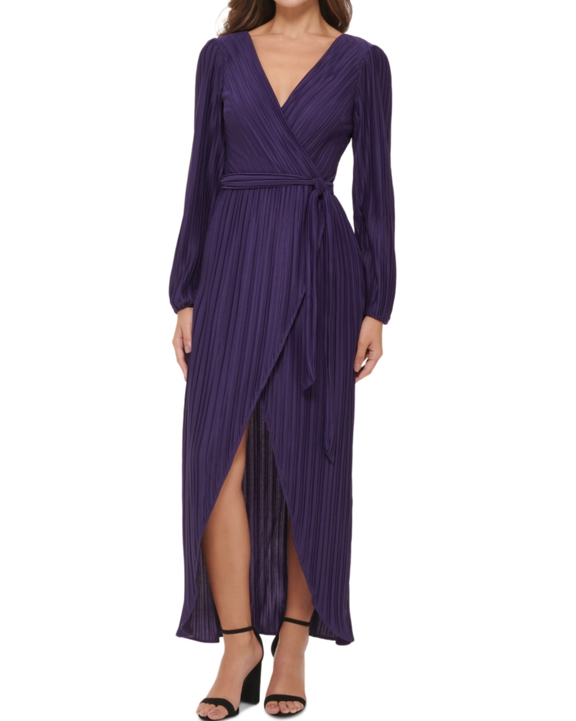 Women, Dress, Pleated Woven, Faux-Wrap, V-Neck, Maxi