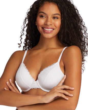 Women, Bra, Center panel, Triangle with Bow, Silky Soft Stretch Seamless Sides and Back Have Covered Elastic Edges for a Custom Fit, Velour-touch elastic straps with contrast color stitching fully adjust in back with Coated Metal Hardware, Back Coated Metal Hook-and-eye Closure, See our Size Chart for hook count