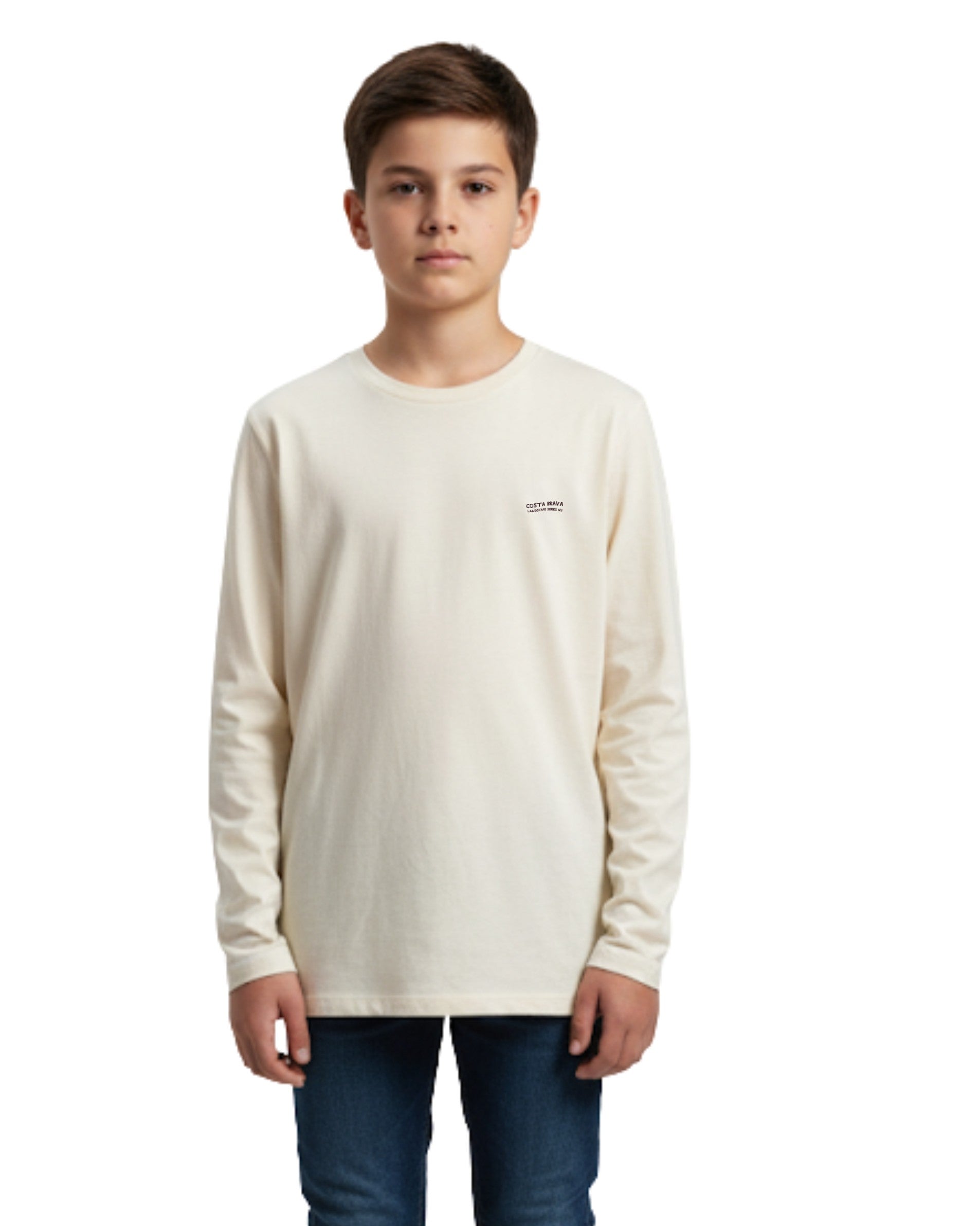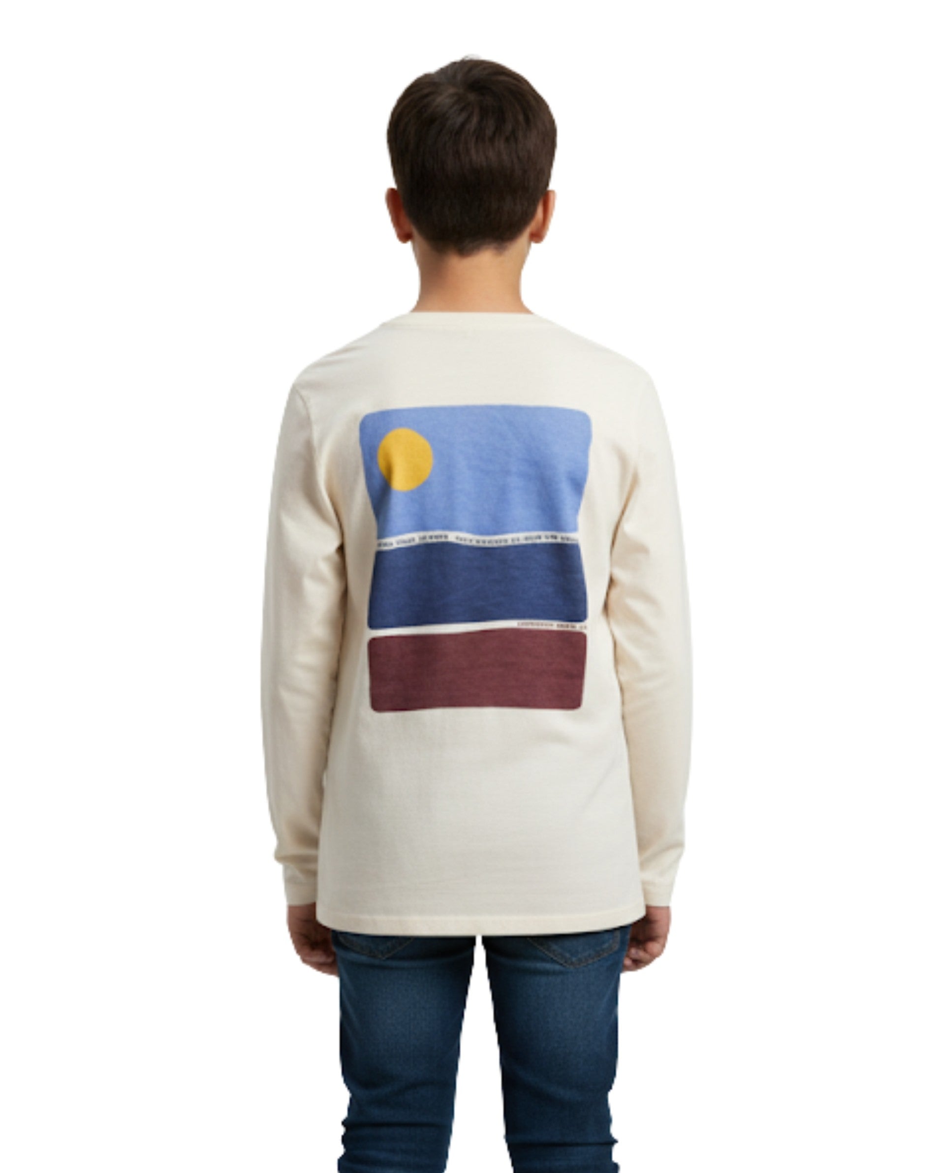 Boys, Long Sleeve, Crew Neck, Soft, Costa Brava Chest Pattern, Back Graphic, Soft, Relaxed Fit, Casual, 100% Cotton