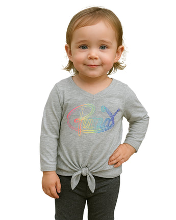Baby Girls, Long Sleeve, V Neck, Front Tie, Front Glitter Logo, Soft, Breathable, Casual, 60% Cotton, 40% Polyester