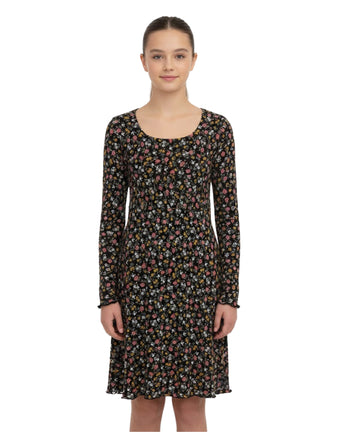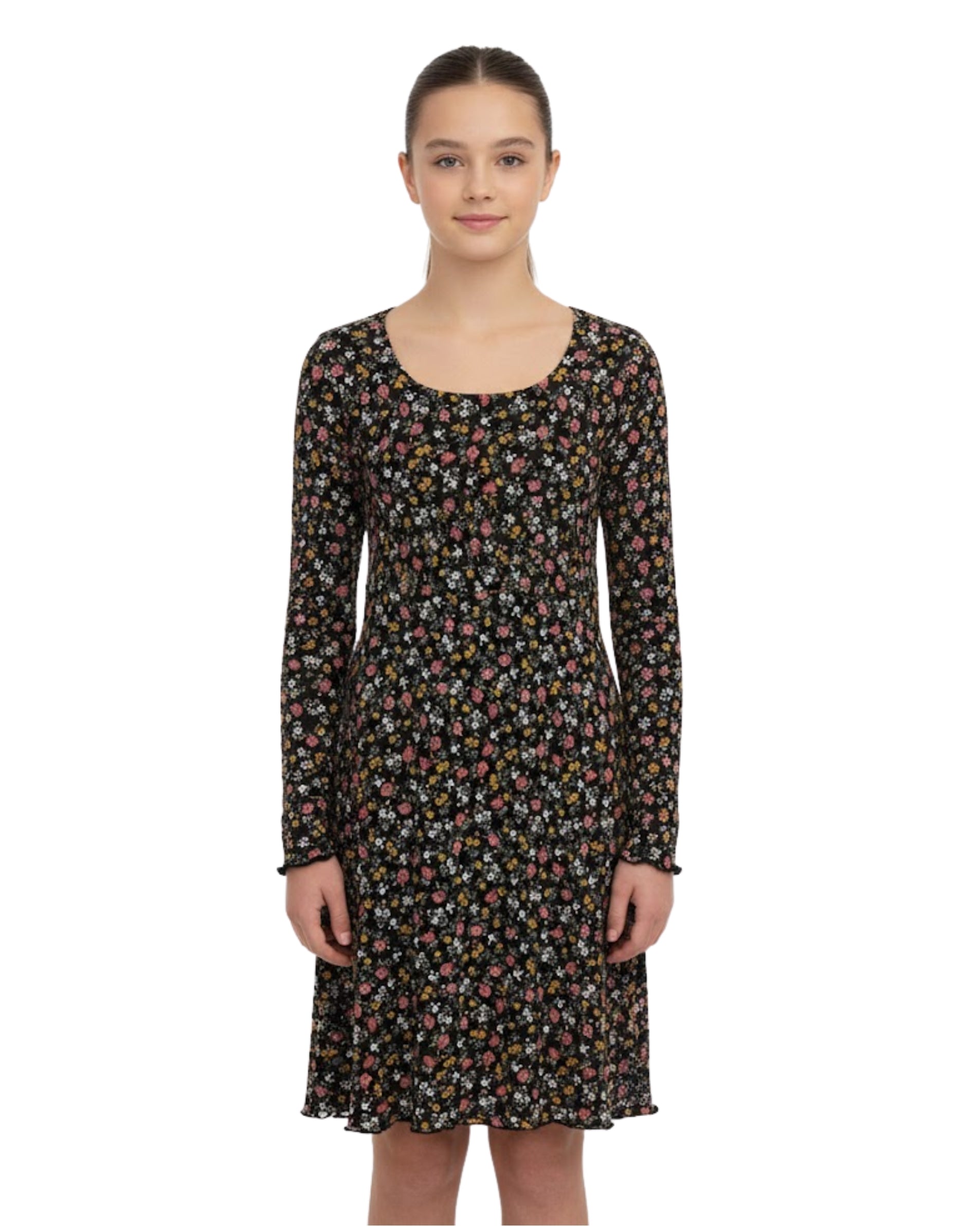 Girls, Long Sleeve, Round Neck, Stretch, Floral, Ruffle, 95% Viscose, 5% Elastane