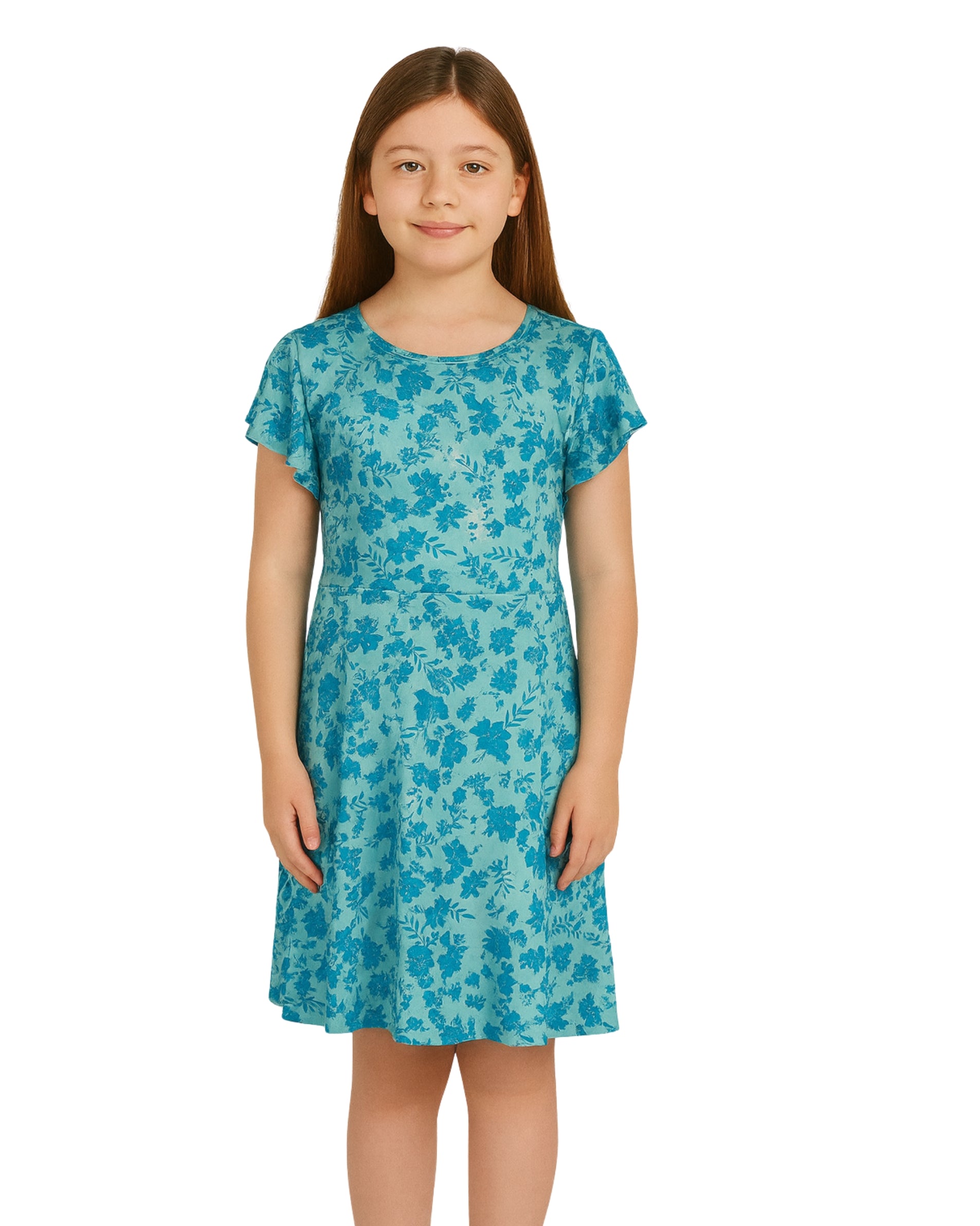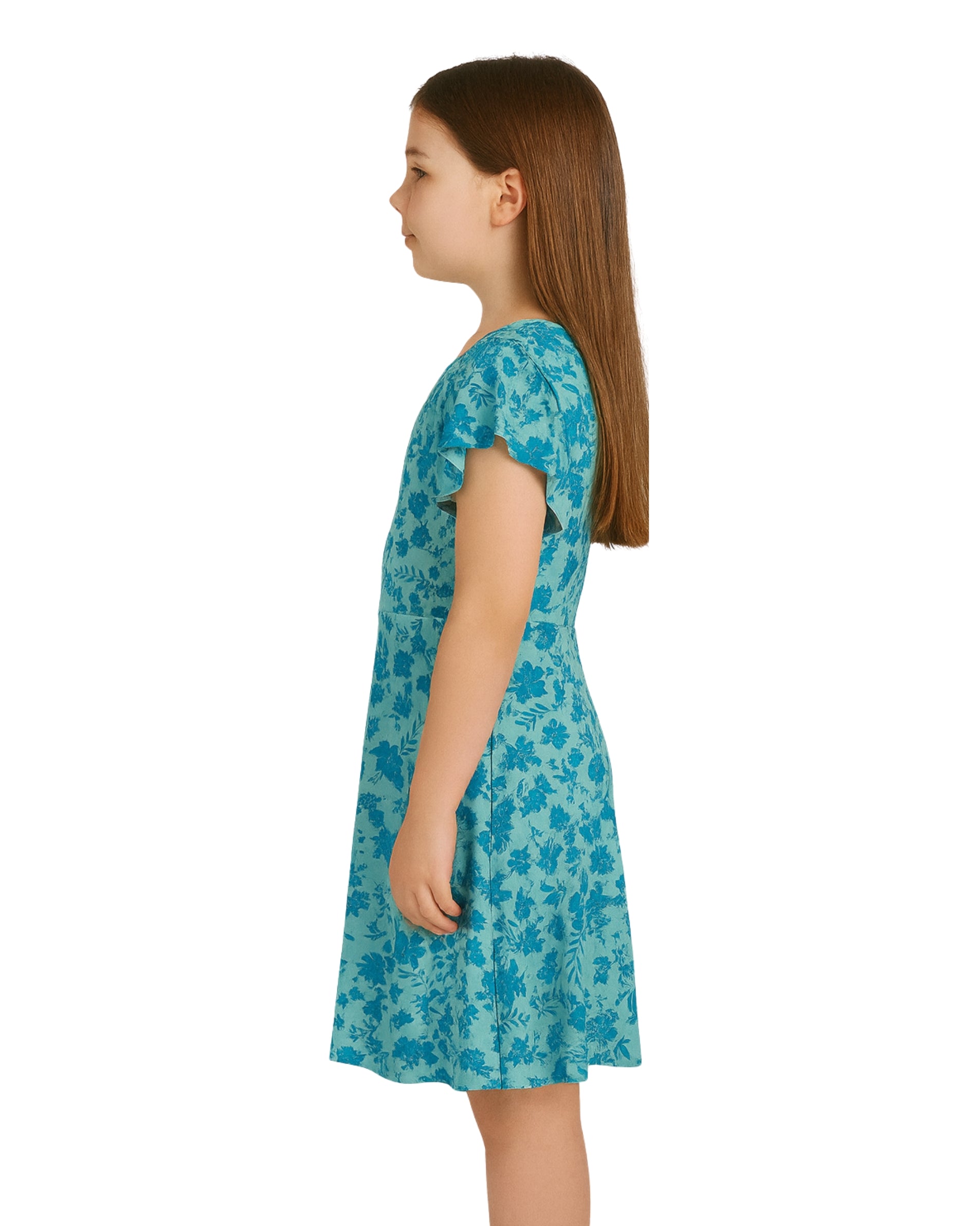 Ruffle Sleeve, Round Neck, Back Open, Floral, Stretch, Casual, 96% Polyester, 4% Spandex