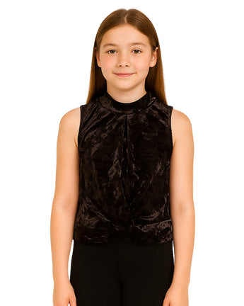 Girls, Sleeveless, Wide Strap , Crew Neck, Twist Front, Velvet, Chick, 90% Polyester, 10% Spandex