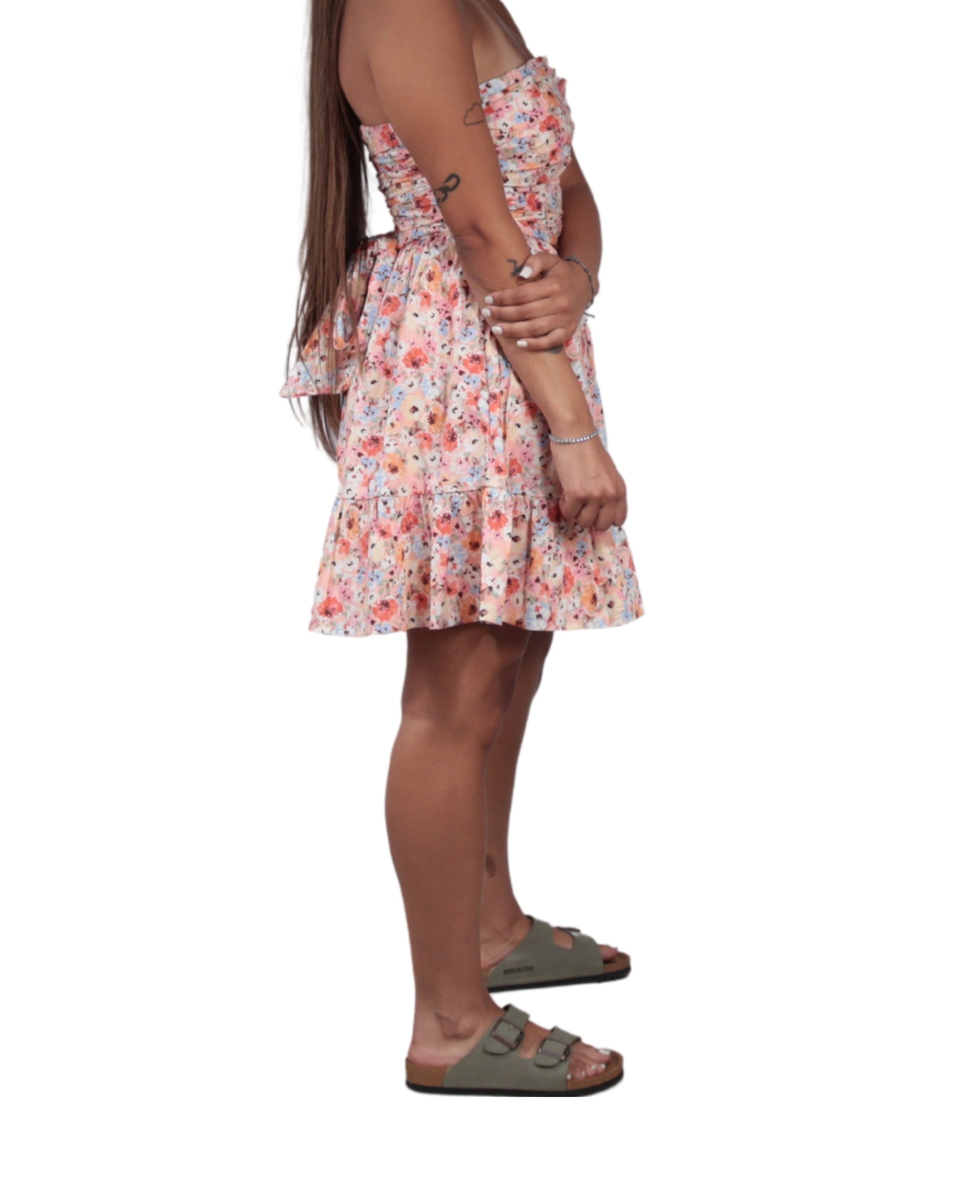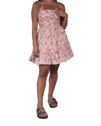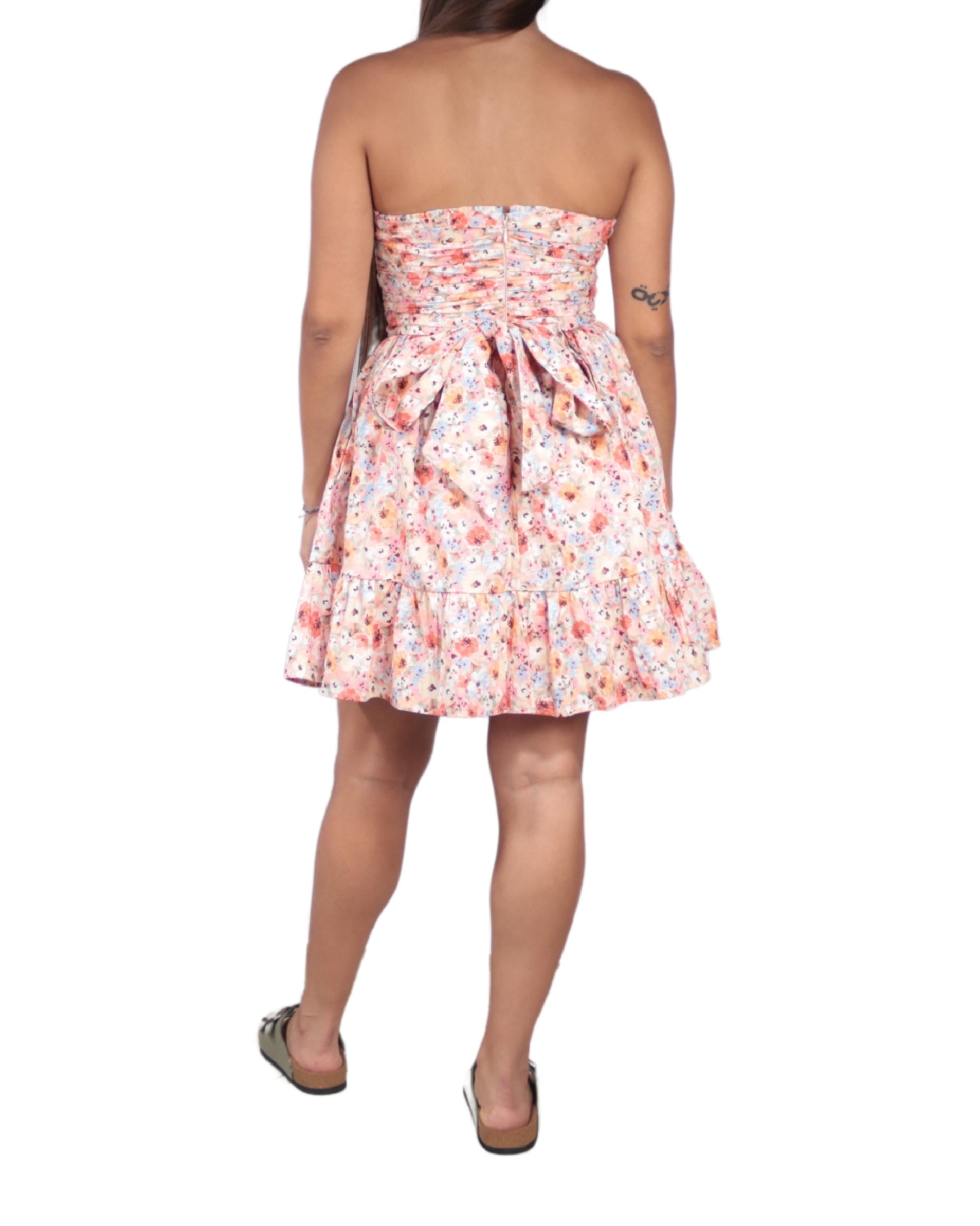 Women, No Sleeve, Square Neck, Back Zipper Closure, Back Bow Tie Waist, Floral, Mini Dress