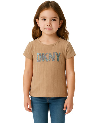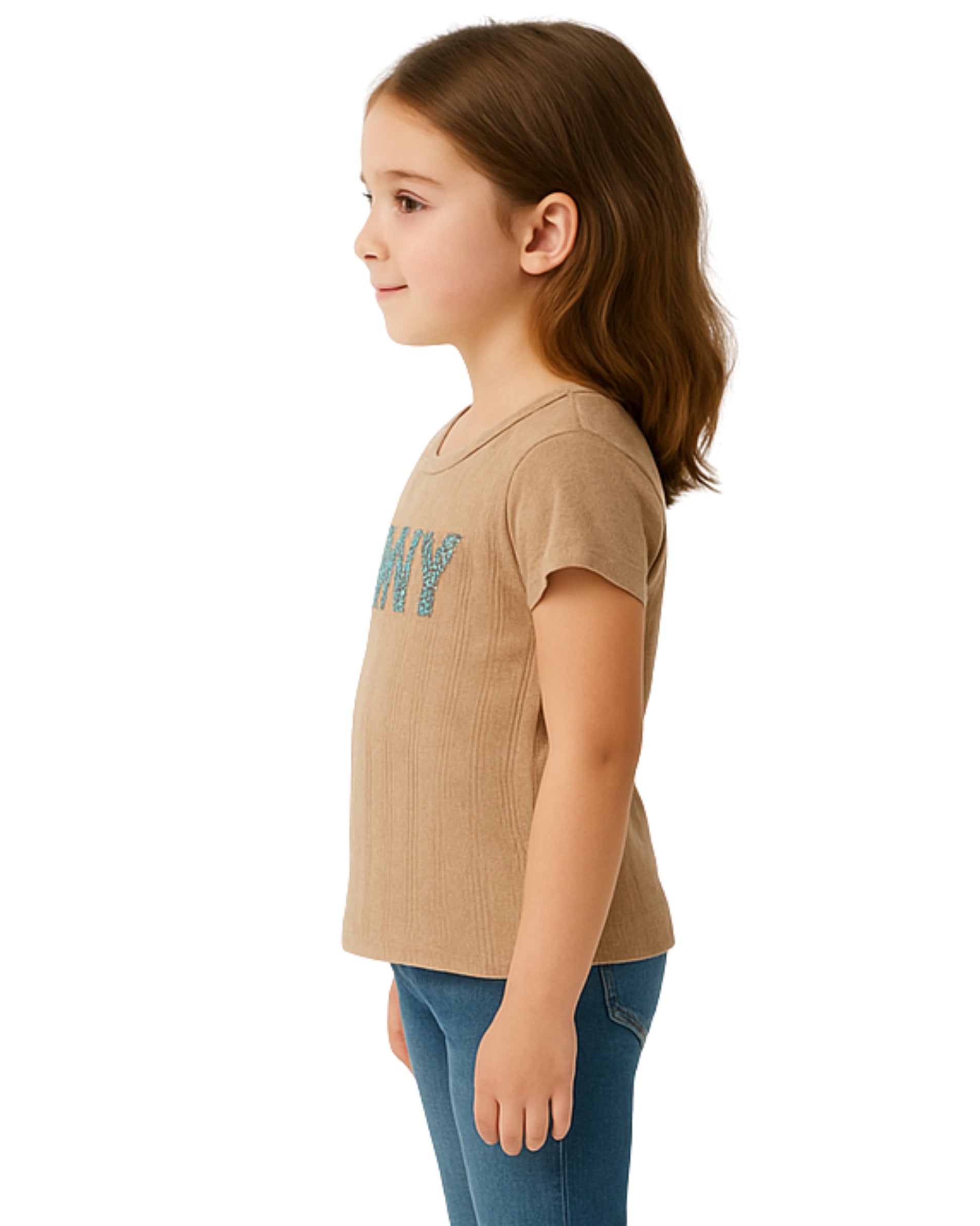 Kids, Girls, Short Sleeve, Stretch, Shinny, Logo Sign, Crew Neck, Comfort, Easy To Wear, 60% Coton, 40% Polyester