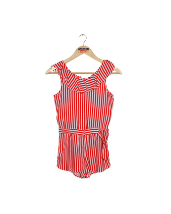 Short Sleeve, Striped, Ruffle, Rubber At Waist, Machine Wash Warm ,100% Rayon