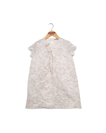 Ruffle Sleeve, Crew Neck, Bow, Floral, Ruffle, Back Zipper Closure, Glitter, 100% Polyester